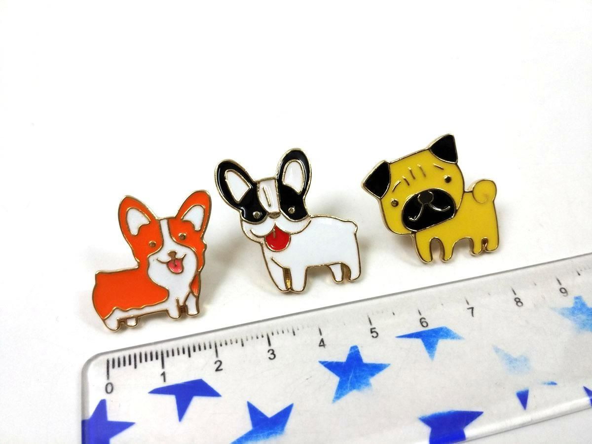 犬 コーギー フレンチブルドッグ パグ ピンバッジ 3個セット ワンコ 動物 留め具 バッチ おしゃれ 飾り方 かわいい 使い方 ピンズ バッヂ バタフライクラッチ キャッチ 装身具 レディース メンズ キッズ おもしろ ユニーク 徽章