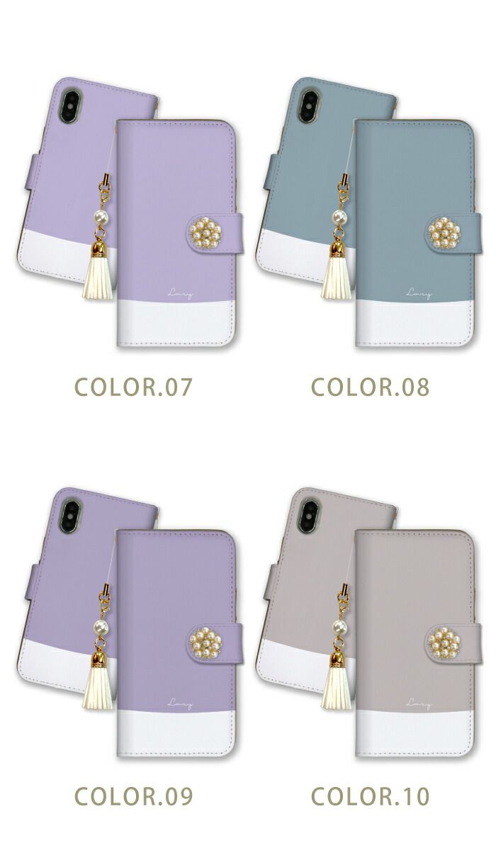 HUAWEI nova lite3 plus + ケース 手帳型 ファーウェイ ノバライト3 プラス スマホケース パール ビジュー ストラップ付 大人女子 韓国 おしゃれ シンプル 無地 バイカラー ツートン パステル カラー05