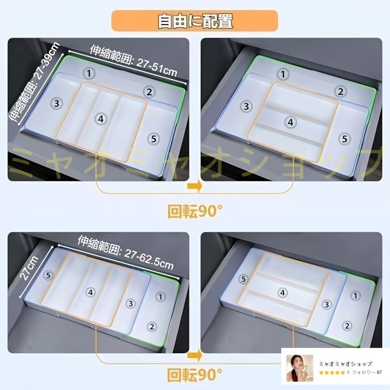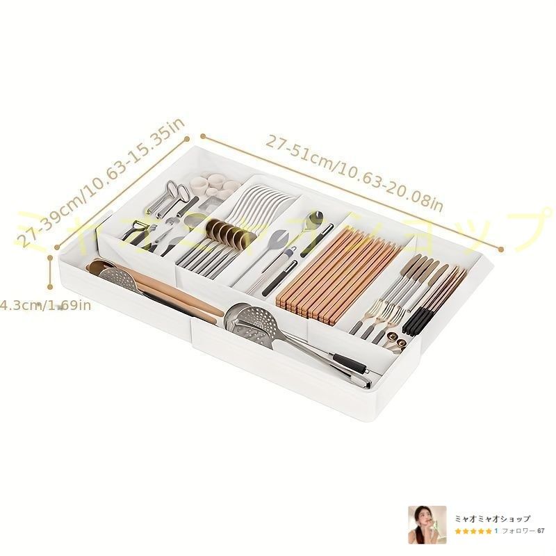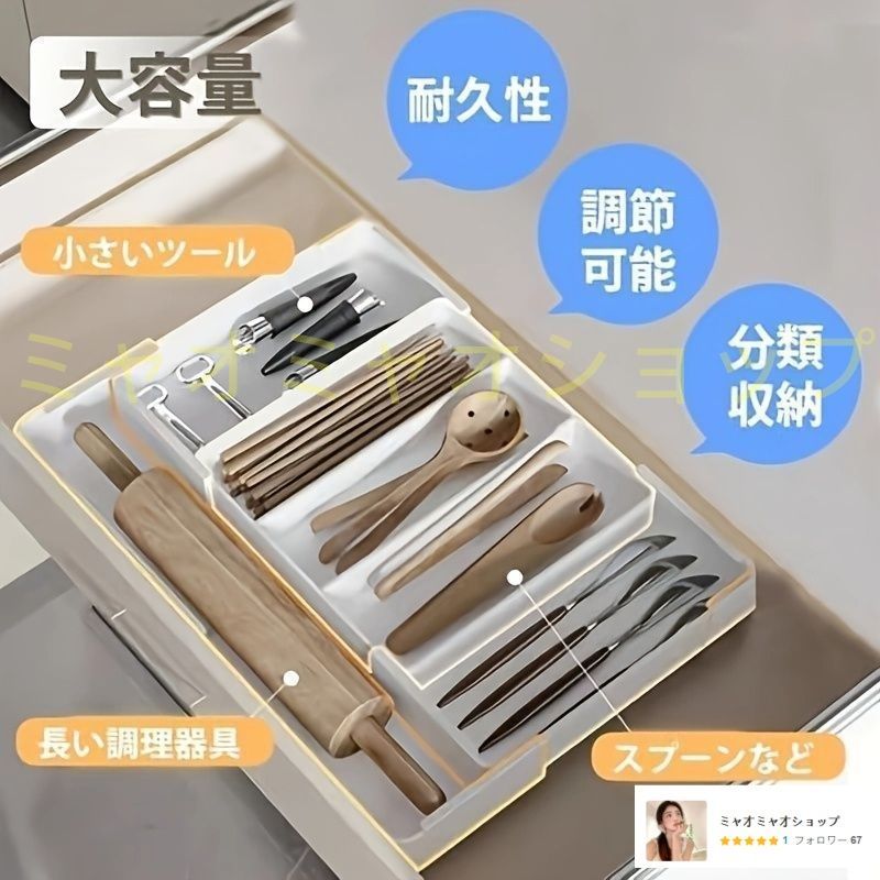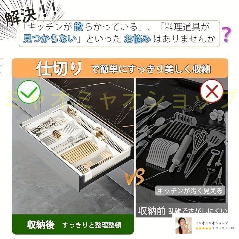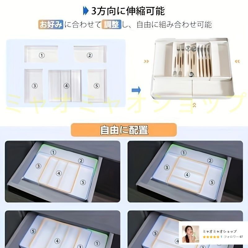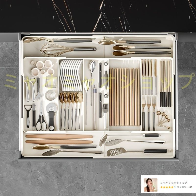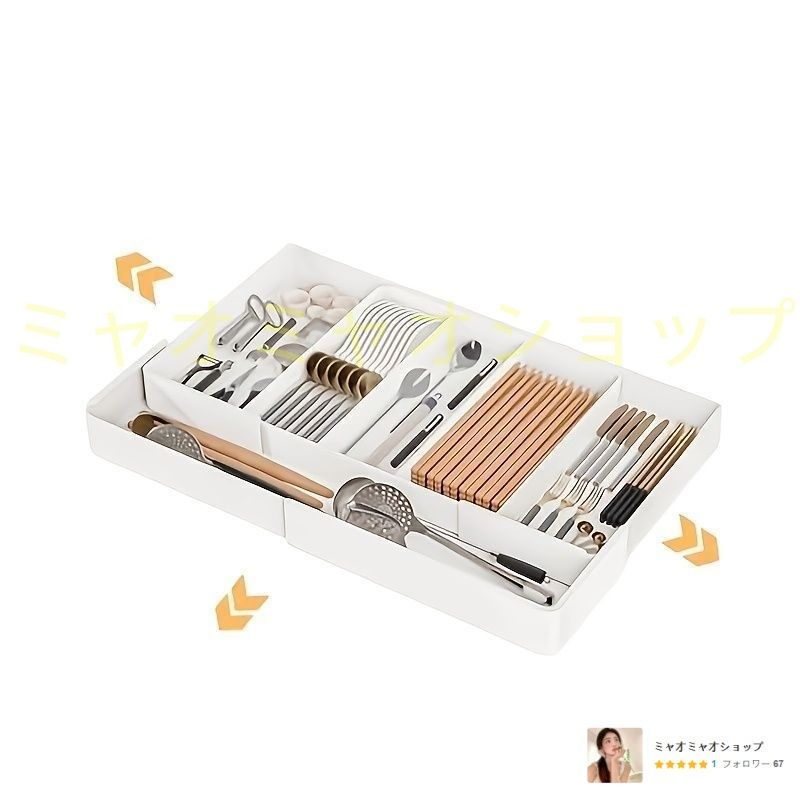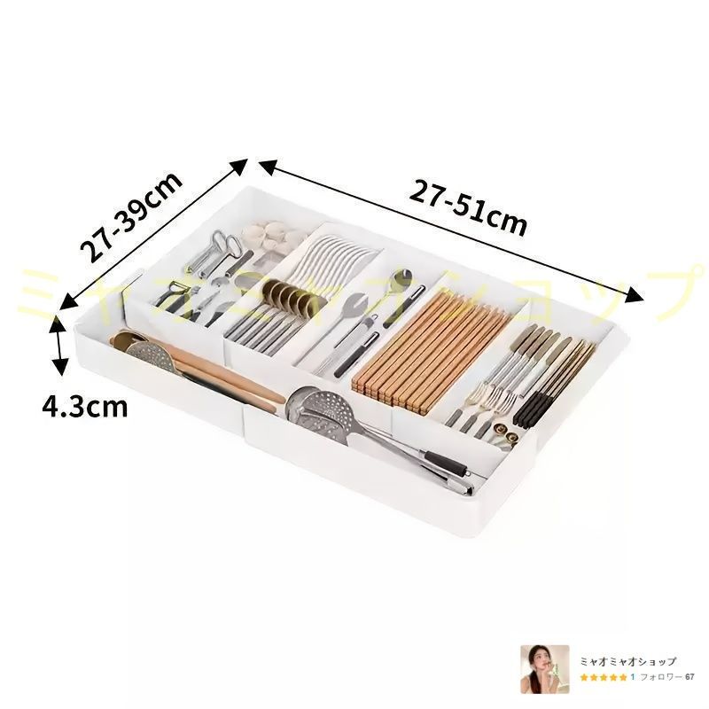 1点 調節可能 拡張可能 カトラリートレーオーガナイザー 3面引き出し 仕切り付き 簡単クリンプラスチックキッチン収納ボックス 取り外し可能 食器ホルダー ホーム レストラン用