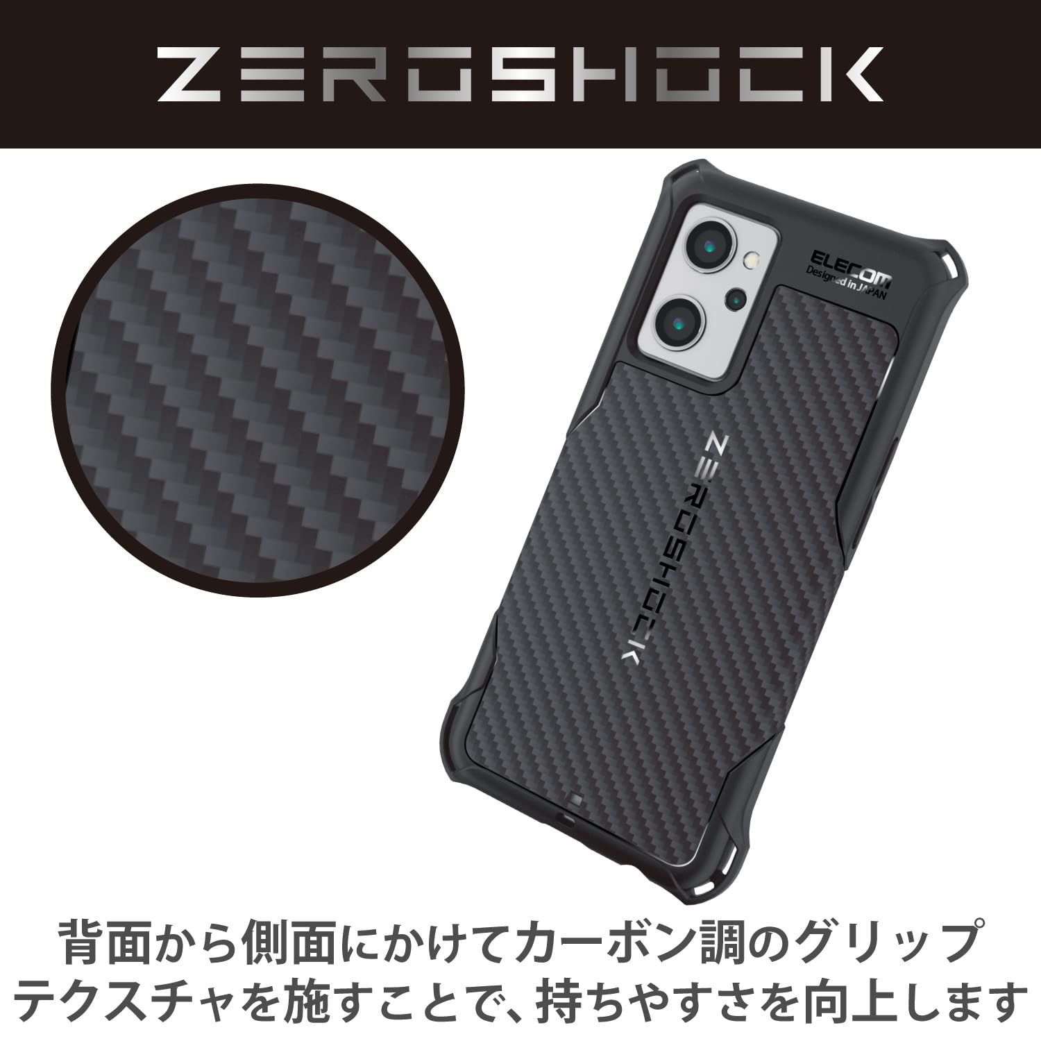 【特価セール】[耐衝撃性に特化したZEROSHOCKシリーズ] ストラップホール付き グリップテクスチャー ハニカム構造 四つ角エアークッション TPU素材 ZEROSHOCK 耐衝撃 ブラック カバー ケース ] OPG04 [ A A PMWO221ZER
