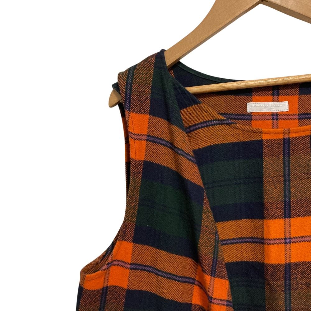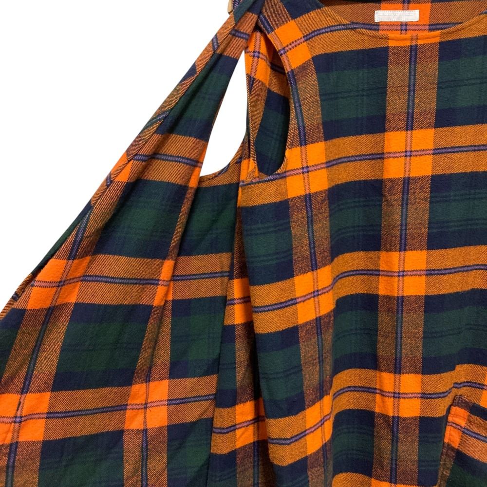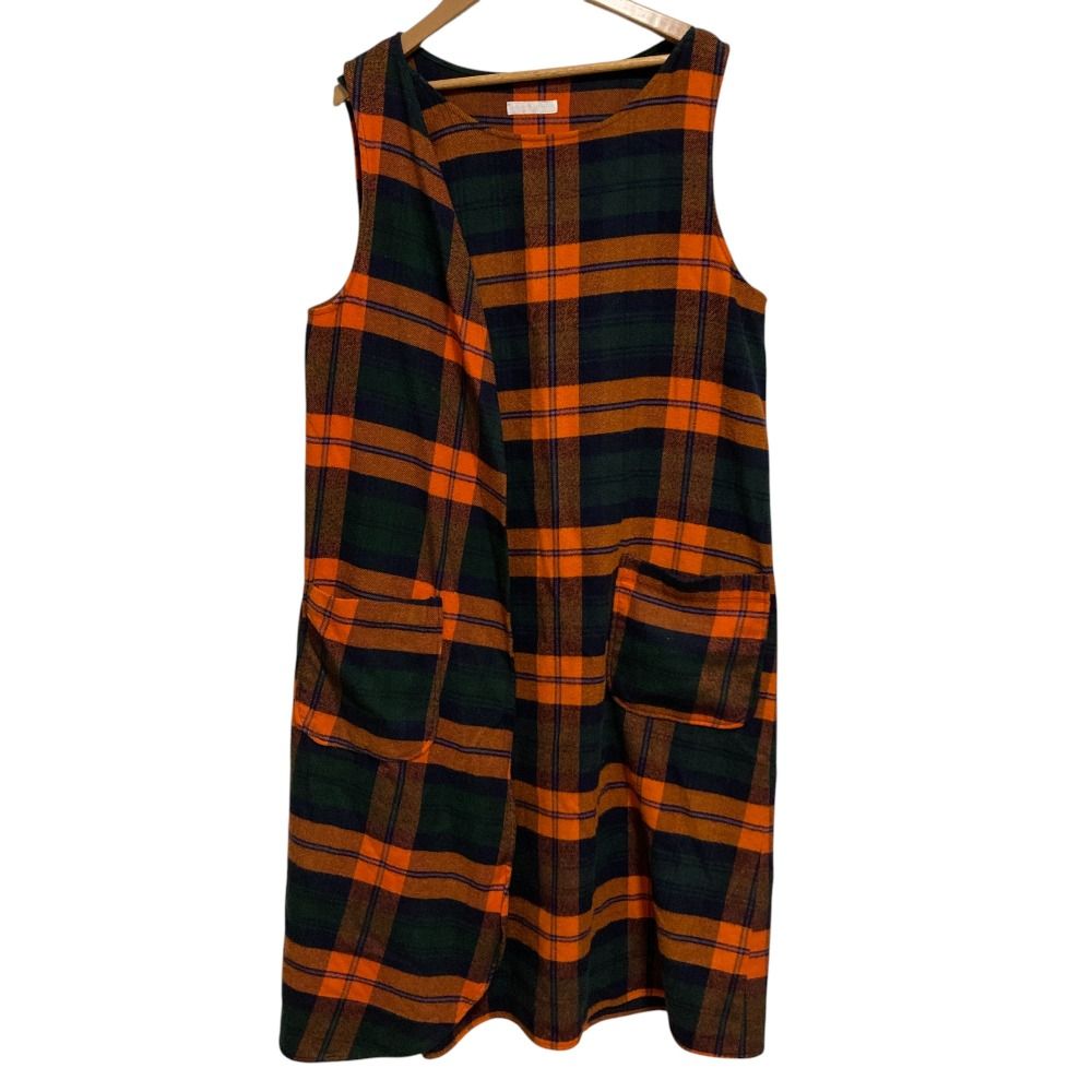美品 ENGINEERED GARMENTS エンジニアードガーメンツ チェック柄 ネル生地 ノースリーブラップワンピース オレンジ レディース 古着 中古 USED