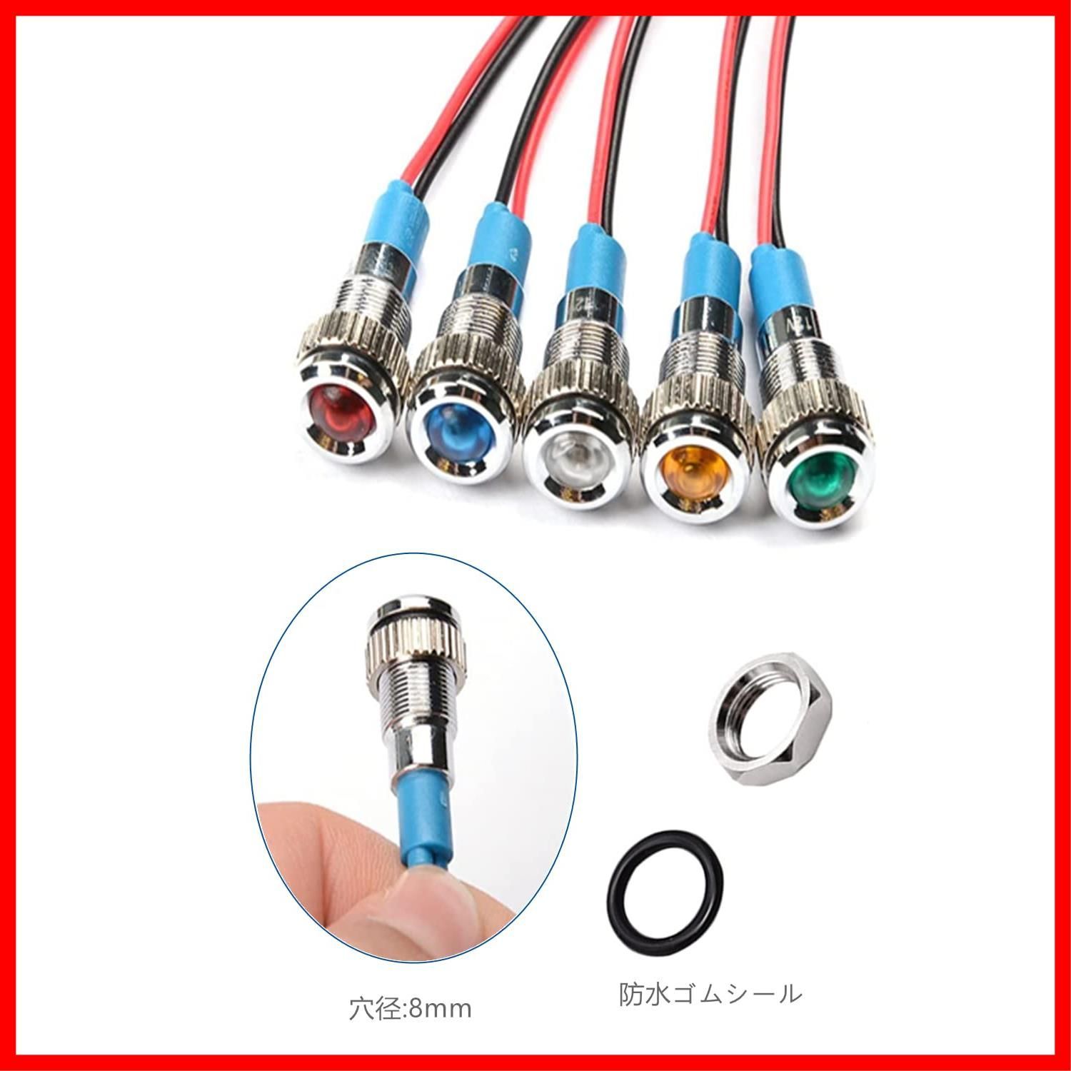 【特売】YFFSFDC 8mm DC 12-24V LED 防水インジケータライト パイロットライトシグナル インジケータ(5色セット)