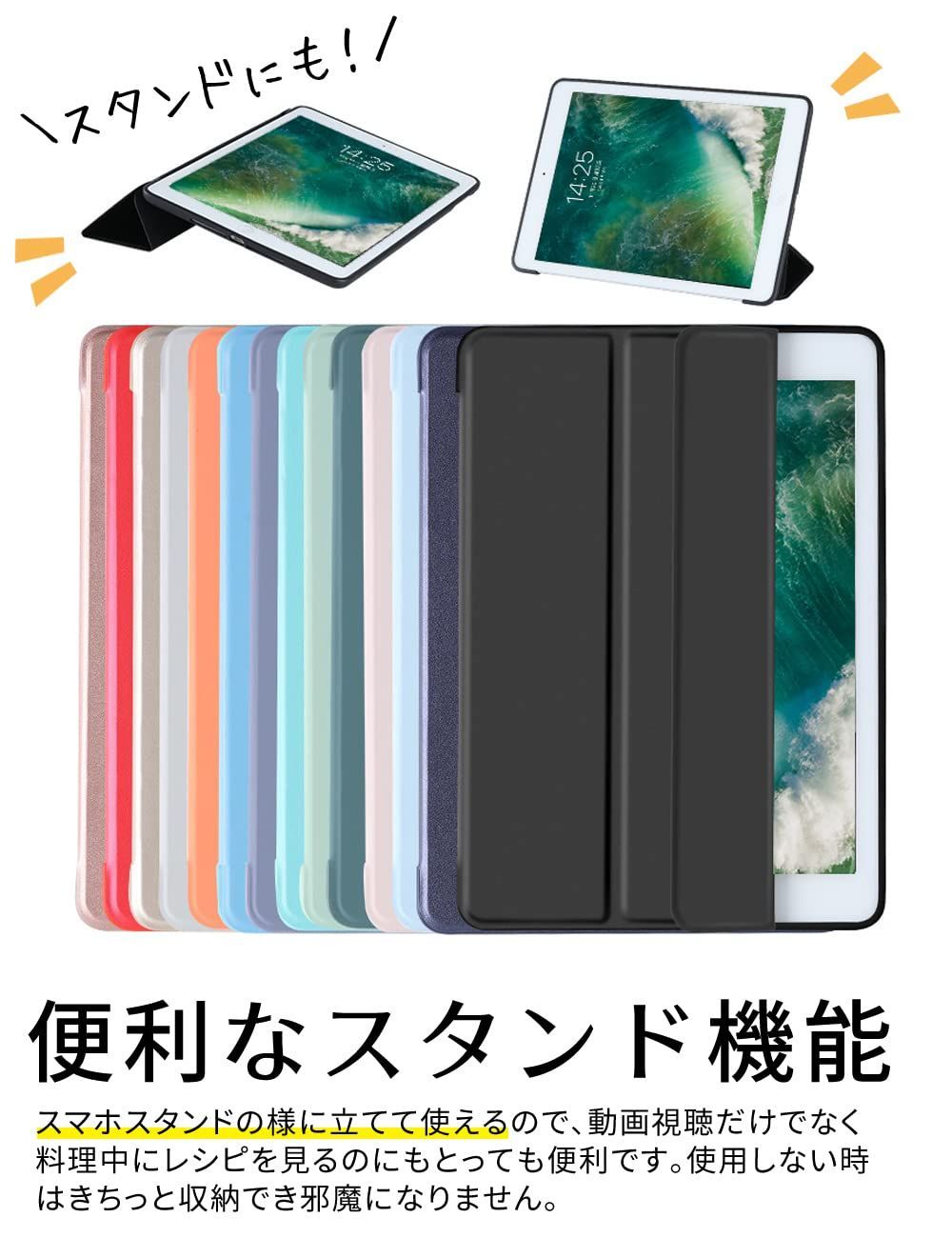 【在庫処分】iPad 第5・6世代 9.7 inch 手帳型 アイパッドカバー シンプル iPadケース ブック型カバー 三つ折りスタンド 耐衝撃カバー ケース カバー おしゃれ アイパッド iPadカバー ddice 無地 シンプル オートスリープ (iPa