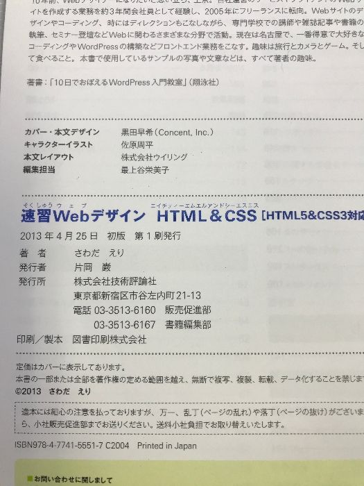 速習Webデザイン HTMLCSS 〔HTML5CSS3対応〕 技術評論社 さわだえり(著)