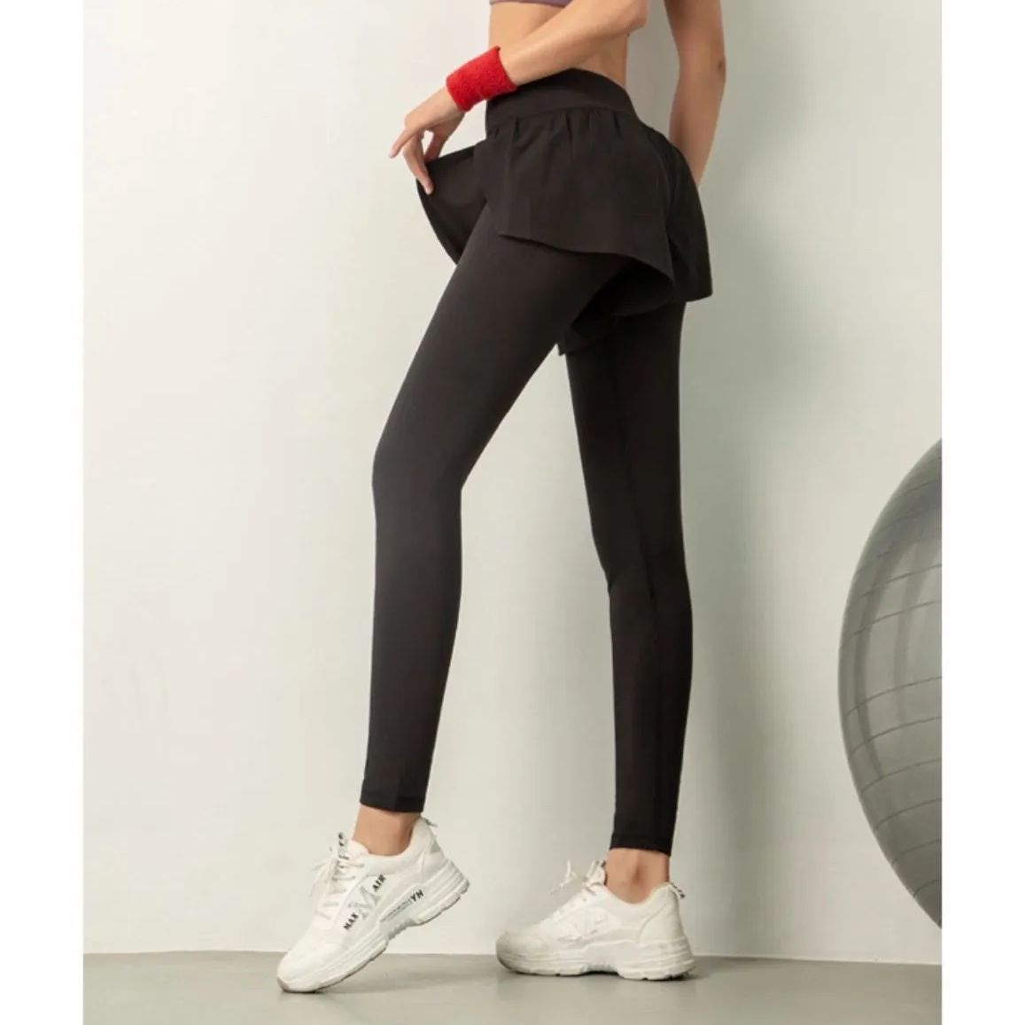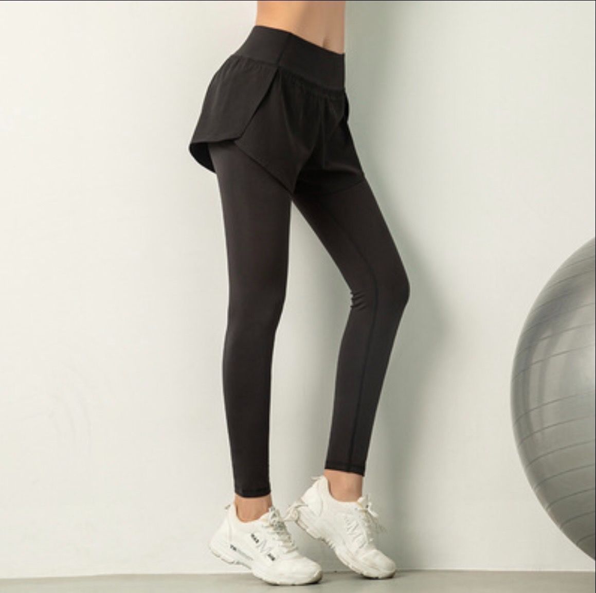 【値下げ】新品未使用 パンツ付レギンス レディース レギンスパンツ一体型 ヨガ スポーツウェア スパッツ レギンス ブラック おまけつき