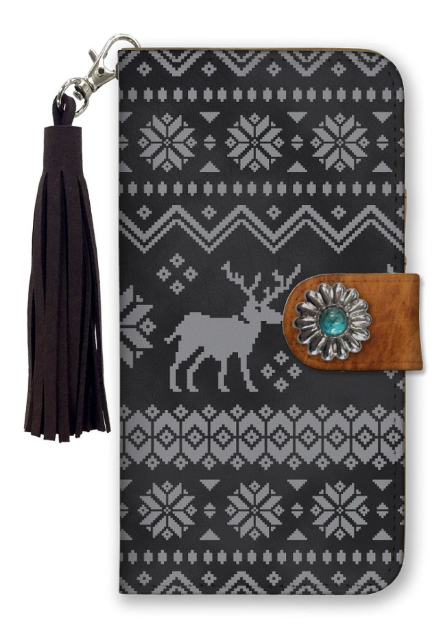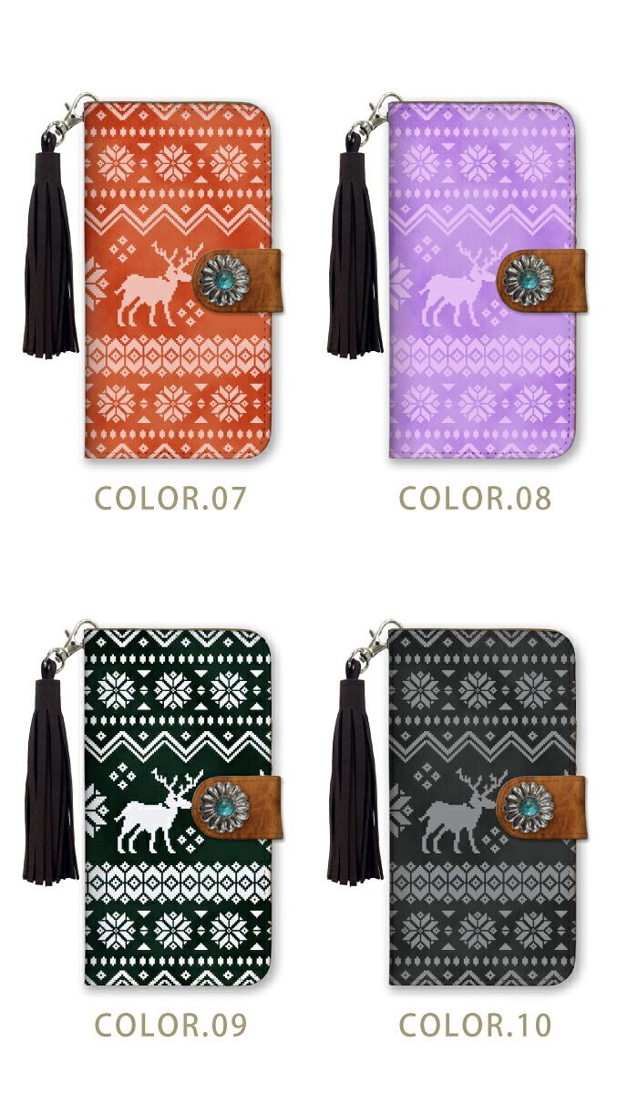 Galaxy A21 A20 SC-42A SC-02M SCV46 ケース 手帳型 ギャラクシーA21 スマホケース フリンジ ストラップ付 コンチョ ノルディック柄 フェアアイル トナカイ かわいい オレンジ ピンク ネイビー カラー10