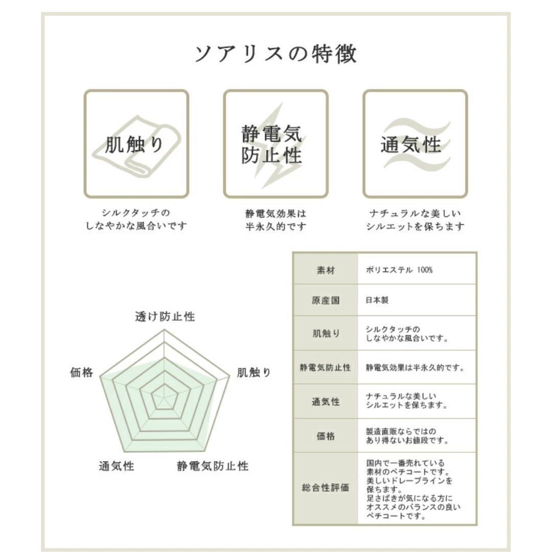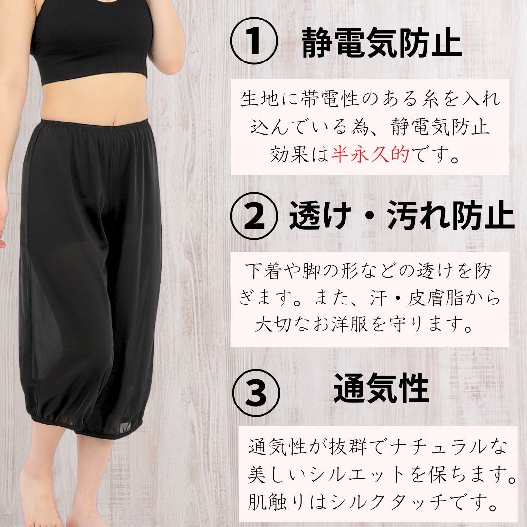 ペチパンツ ペチコート 快適 裾ゴム 裾ゴム入り 夏 夏用 冷感 涼しい トイレで便利 ロング べたつかない べたつき防止 日本製 透け防止 丈60cm-80cm ペチコート パンツ レディース インナースカート 黒 ブラック ベージュ ソアリス Mサイズ