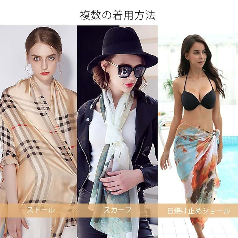 【さまざまな着方】シルクスカーフは非常に実用的で、すべての季節に適しています。秋と冬には、ショールはあなたを暖かく保ち、冷たい風からあなたを守ります。春夏の海辺で日焼け止めショールとして使用できます。