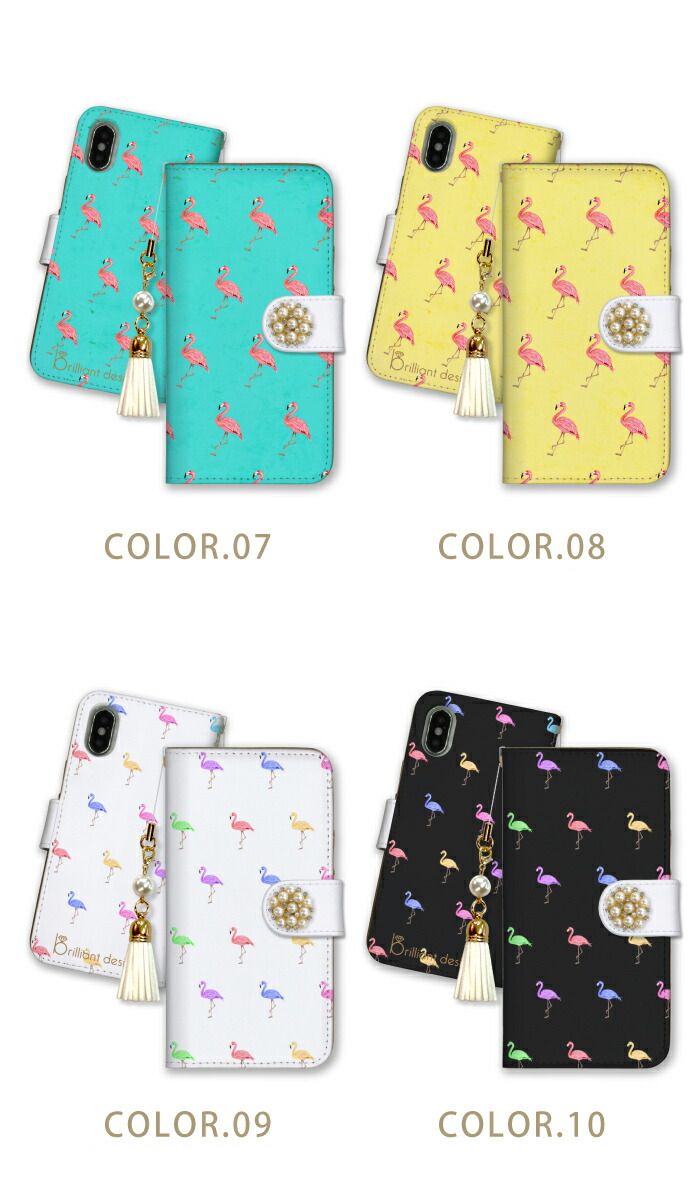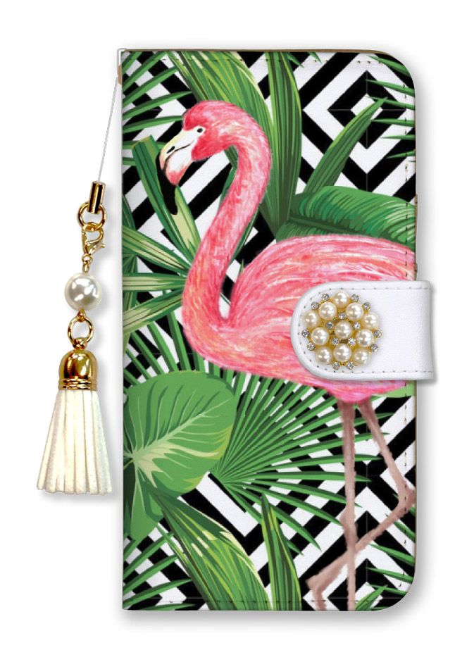 Android One S7 ケース 手帳型 アンドロイドワンS7 スマホケース パール デコ ストラップ付 おしゃれ 流行 トレンド フラミンゴ 西海岸 大人 可愛い ブランド ピンク ブルー カラー05