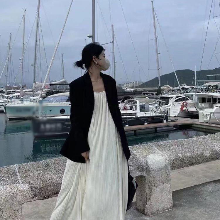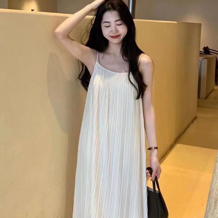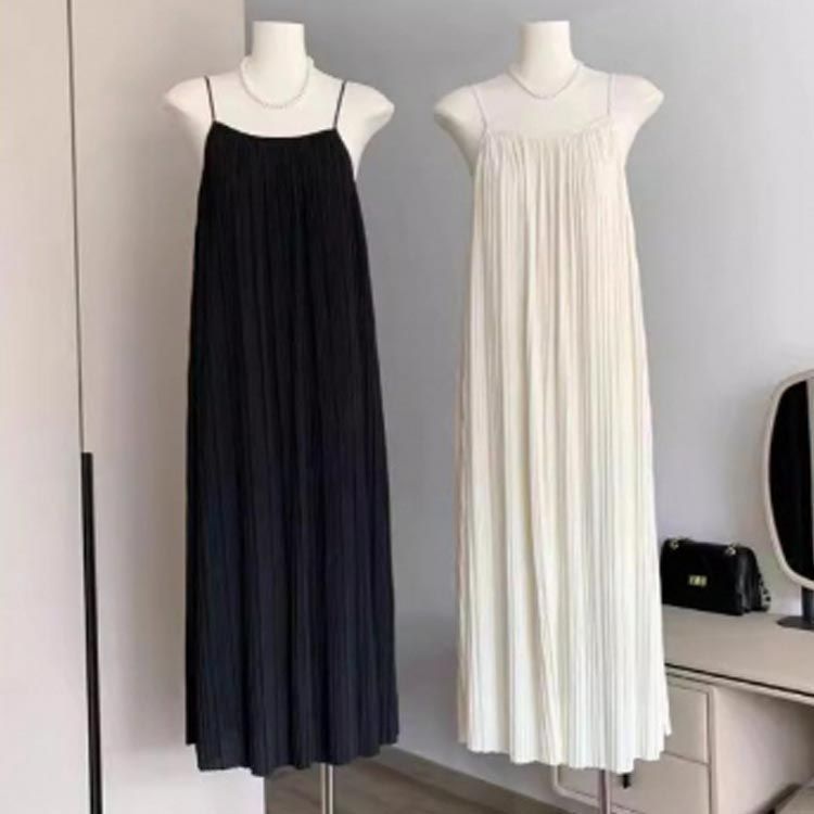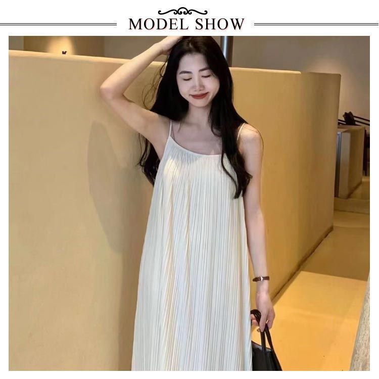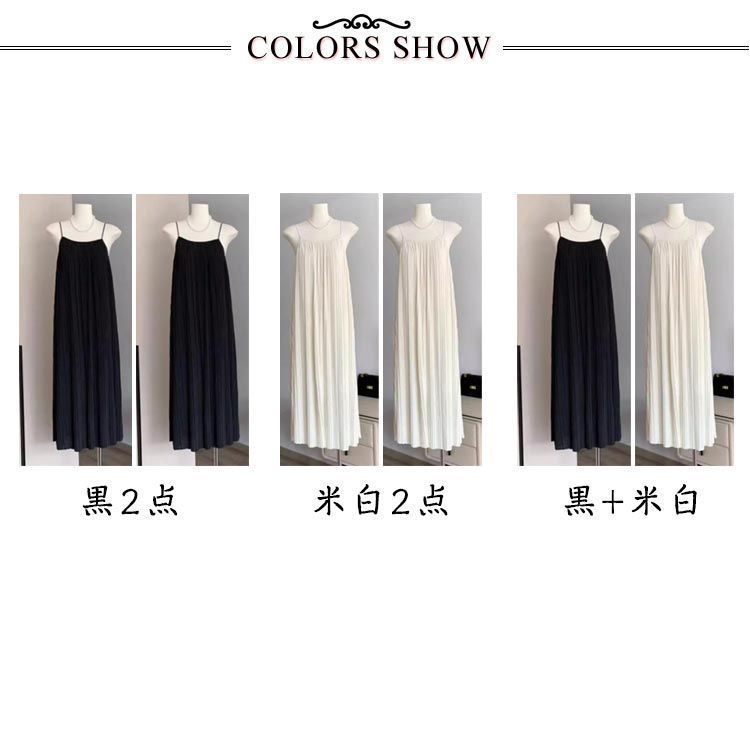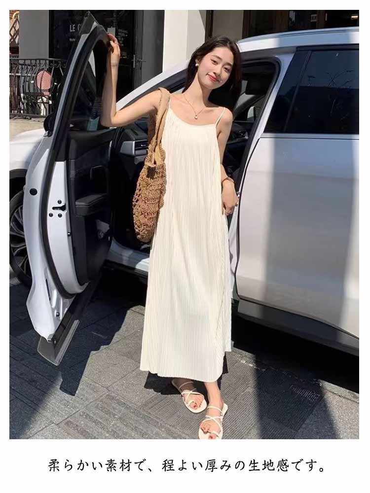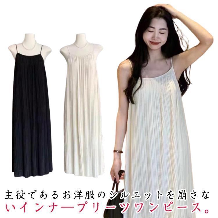 2点セット キャミソールワンピース インナー 夏 プリーツワンピース インナーワンピース ロングワンピース ノースリーブ キャミソール ワンピース 大人 カジュアル かわいい リゾート 旅行 M L #ambm0083