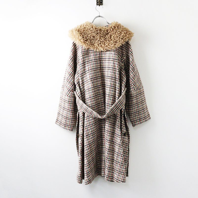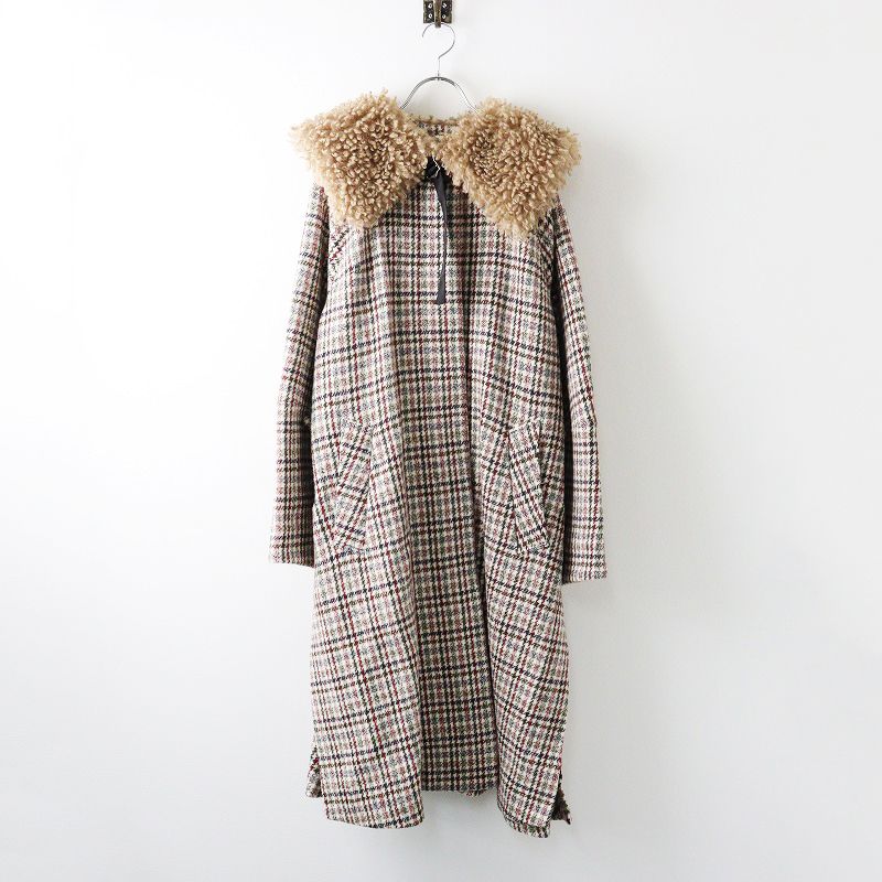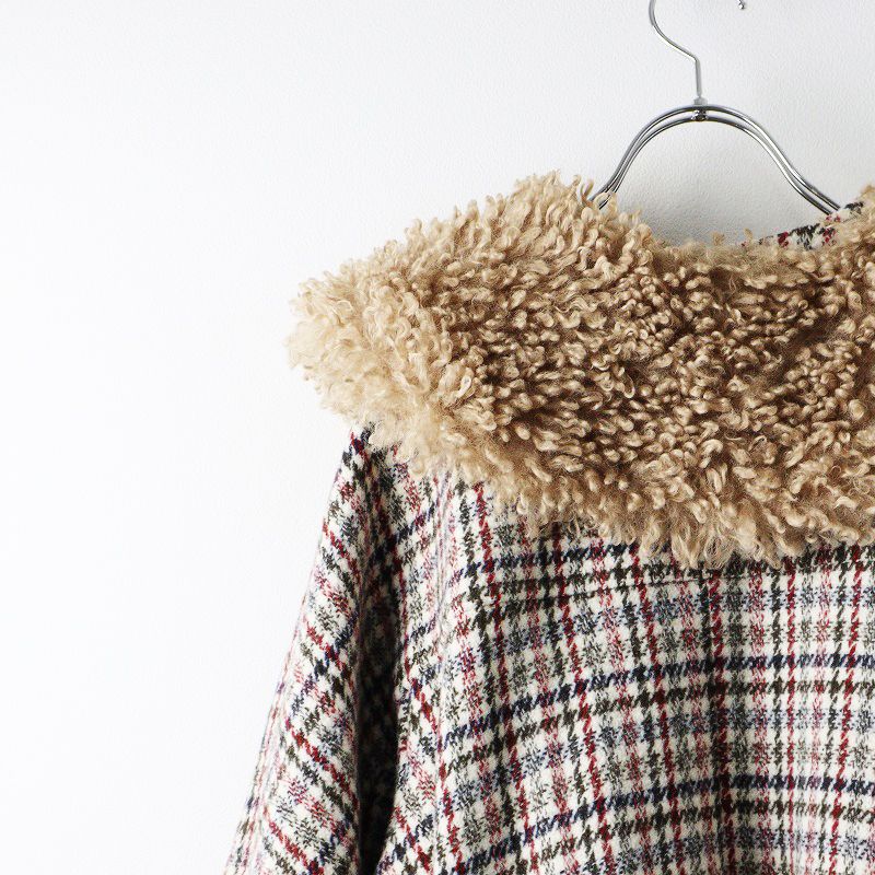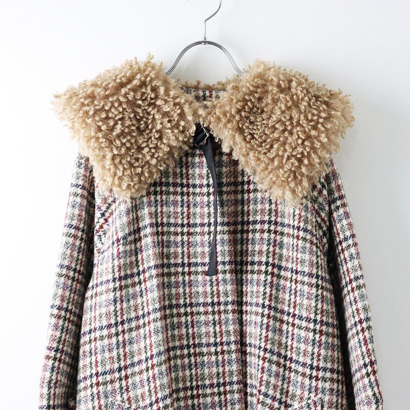美品 2022AW ロイスクレヨン Lois CRAYON 受注コート ファーケープ付き チェック ウールフレアコート M /マルチ 【2400014079593】