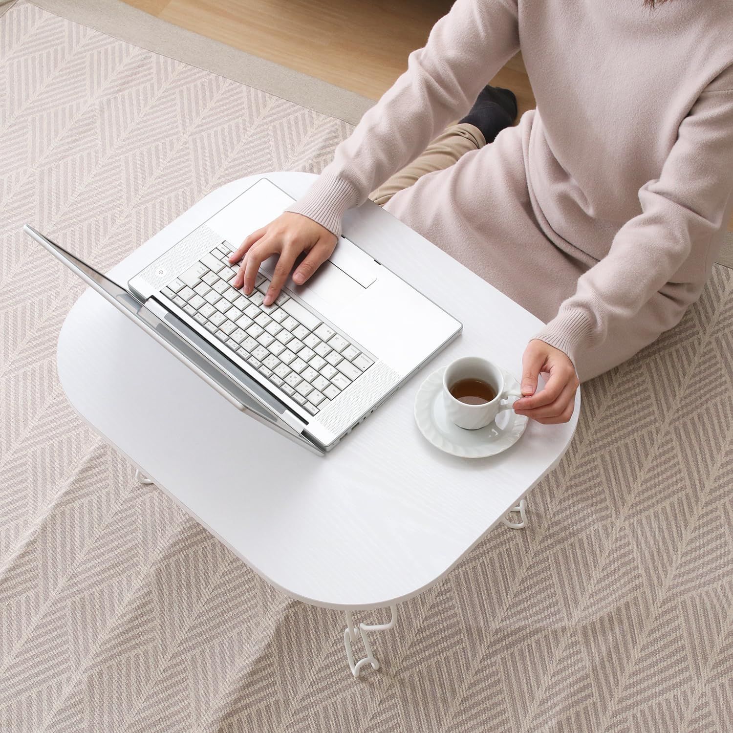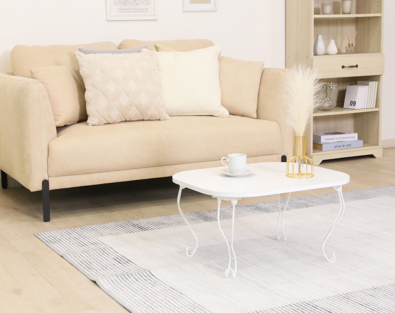 新品 センターテーブル コンパクト 木目調 ねこ脚 ホワイト 38715 幅60×奥行48×高さ31.5×cm 折りたたみ ローテーブル 不二貿易