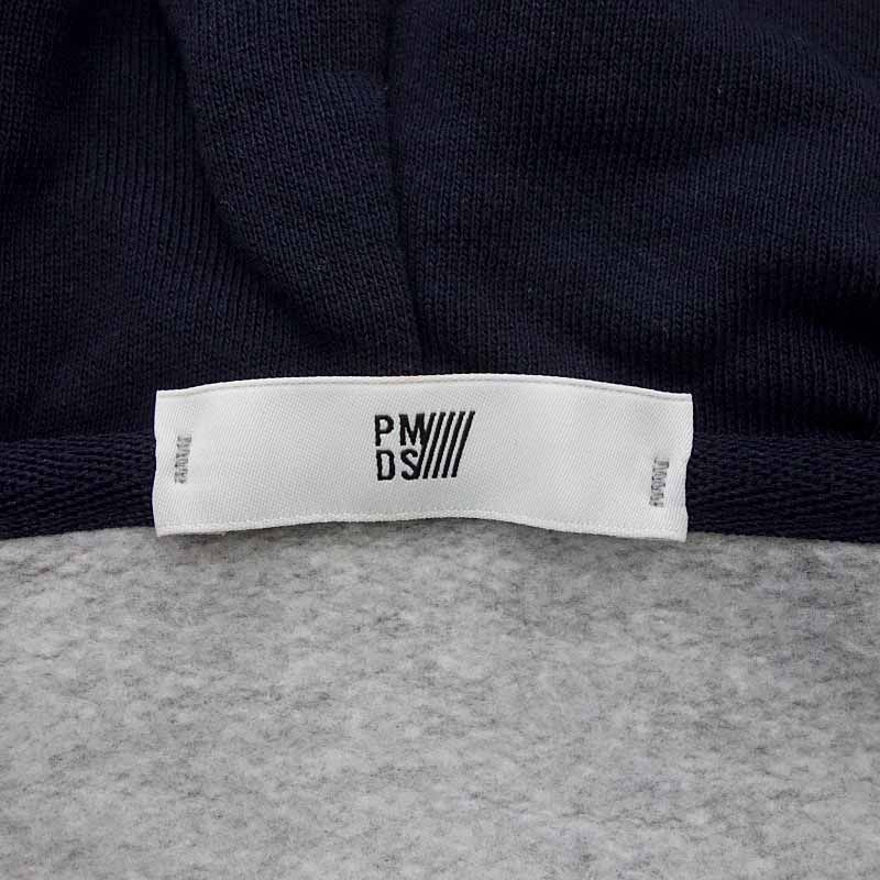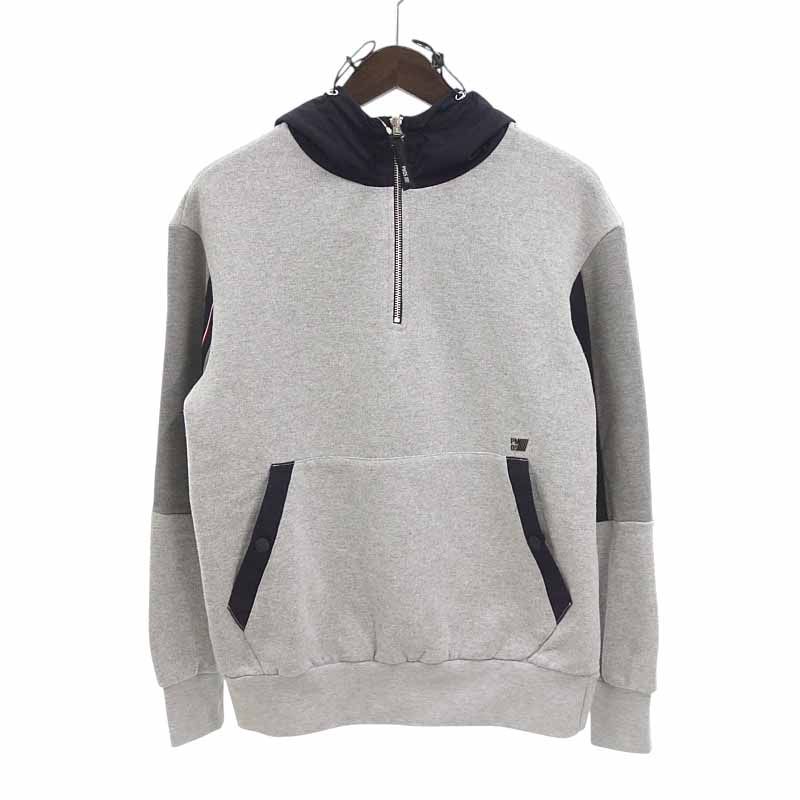 ピーエムディーエス/P.M.D.S. イタリア製 異素材切替デザイン ハーフジップ パーカー グレー×ダークネイビー サイズ メンズS