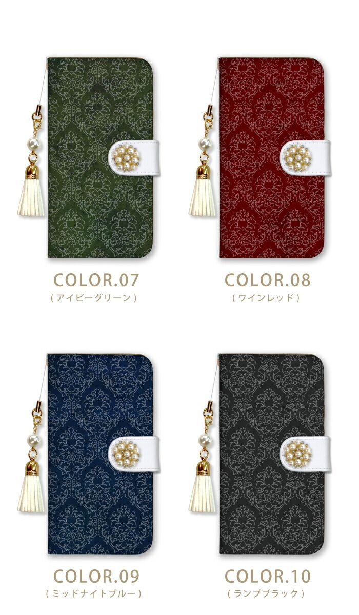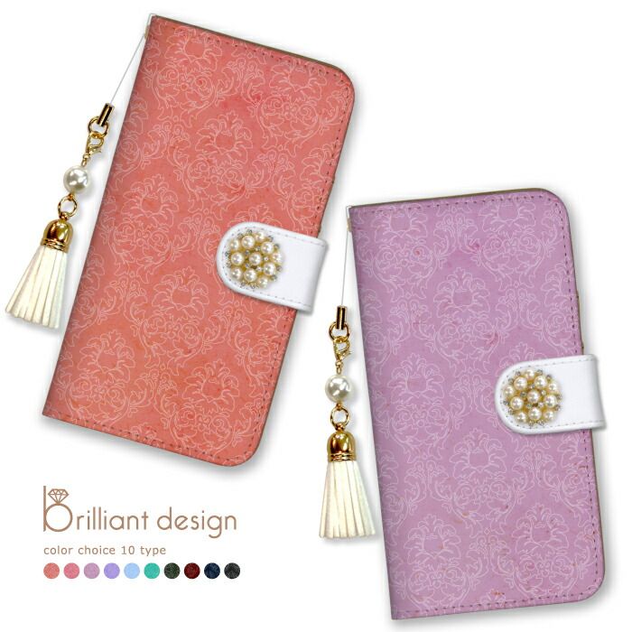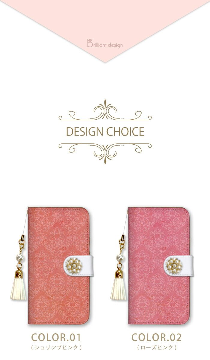 Xperia 1 VII SO-51F SOG15 A501SO ケース 手帳型 エクスペリア 1 7 スマホケース パール デコ ストラップ付 おしゃれ レザー ダマスク柄 上品 大人 可愛い かわいい ブランド ピンク カラー07