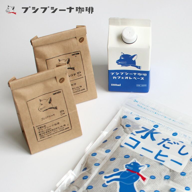 プシプシナ珈琲の豆や、アレンジし甲斐のあるカフェオレベースもお取り扱いしています。