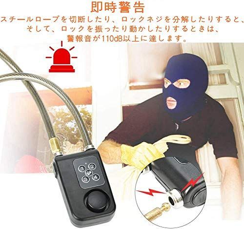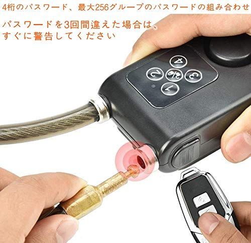 アラームバイクロック Bewinner ワイヤレス アラームロック 安全ロック バイク オートバイ用 コードスチールケーブルチェーンロック リモートコントローラ付き 自転車 セキュリティアラーム