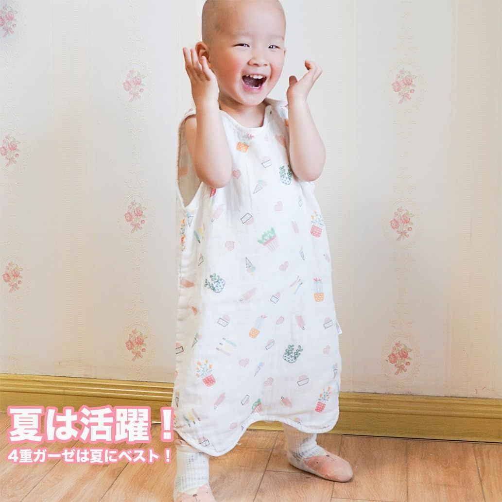 新品 [MOMSMENU] 赤ちゃん スリーパー 夏用 ベビー 寝袋 4重ガーゼ 綿100% 柔らかい 寝冷え防止 かわいい