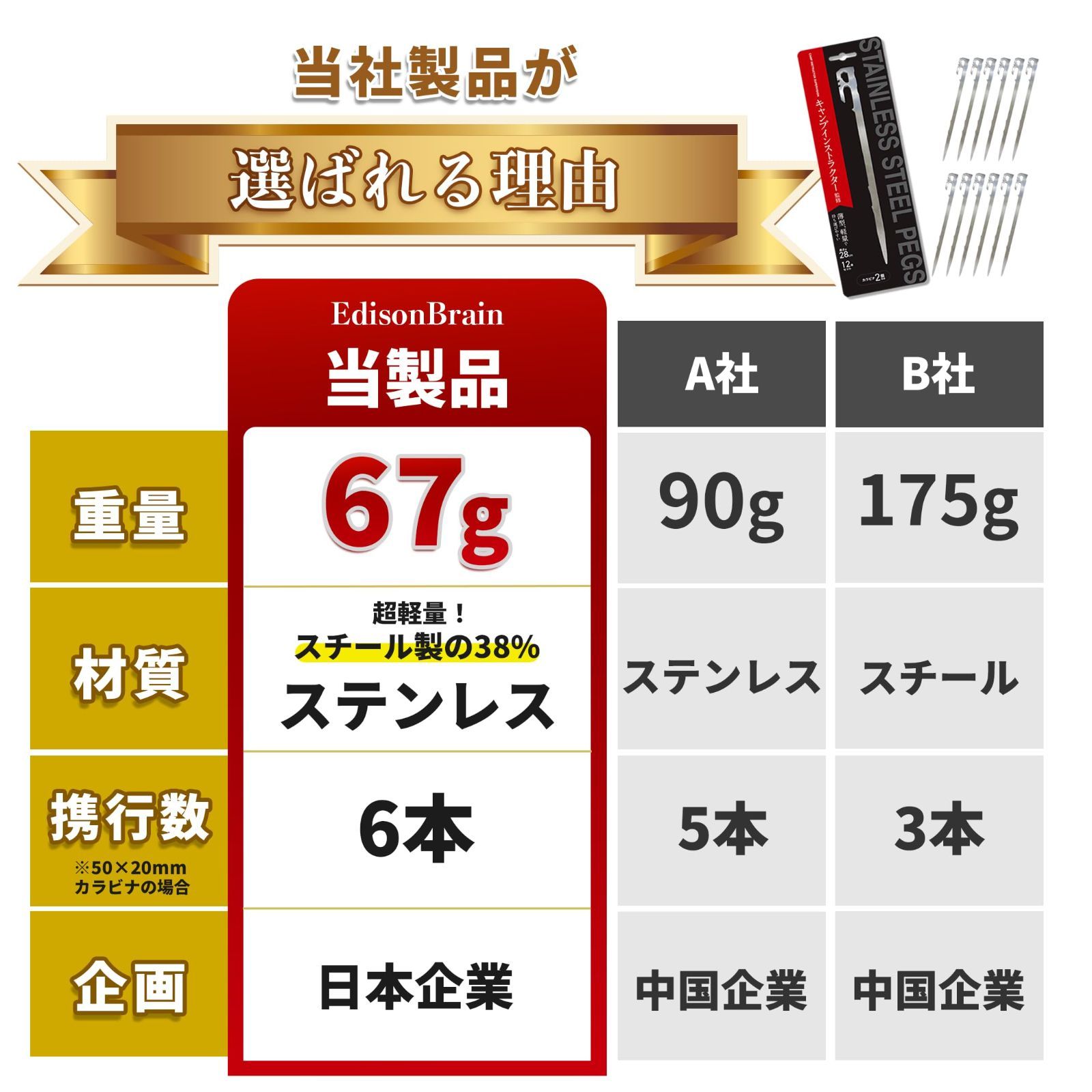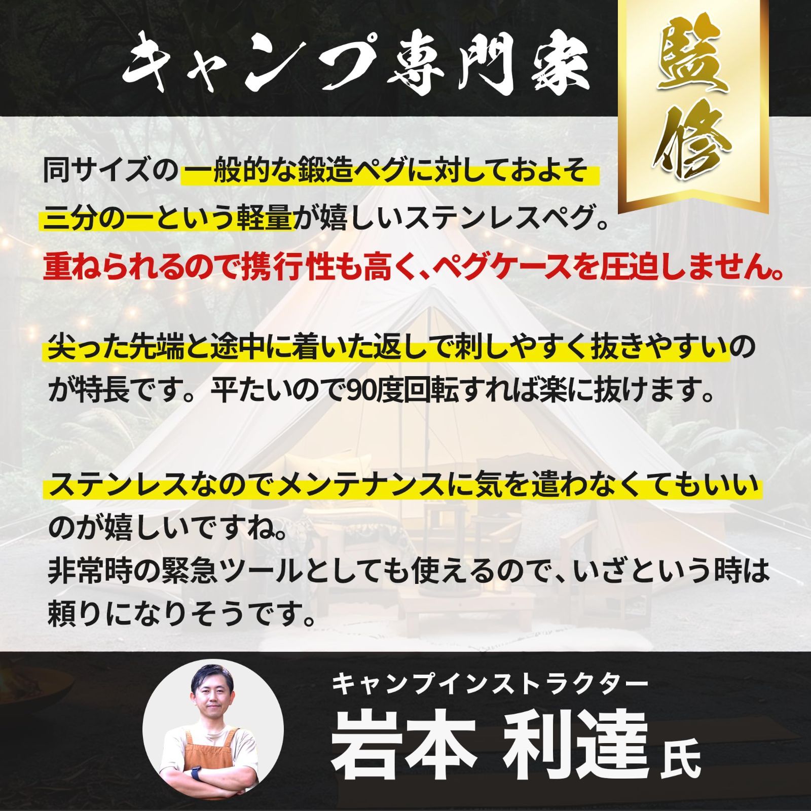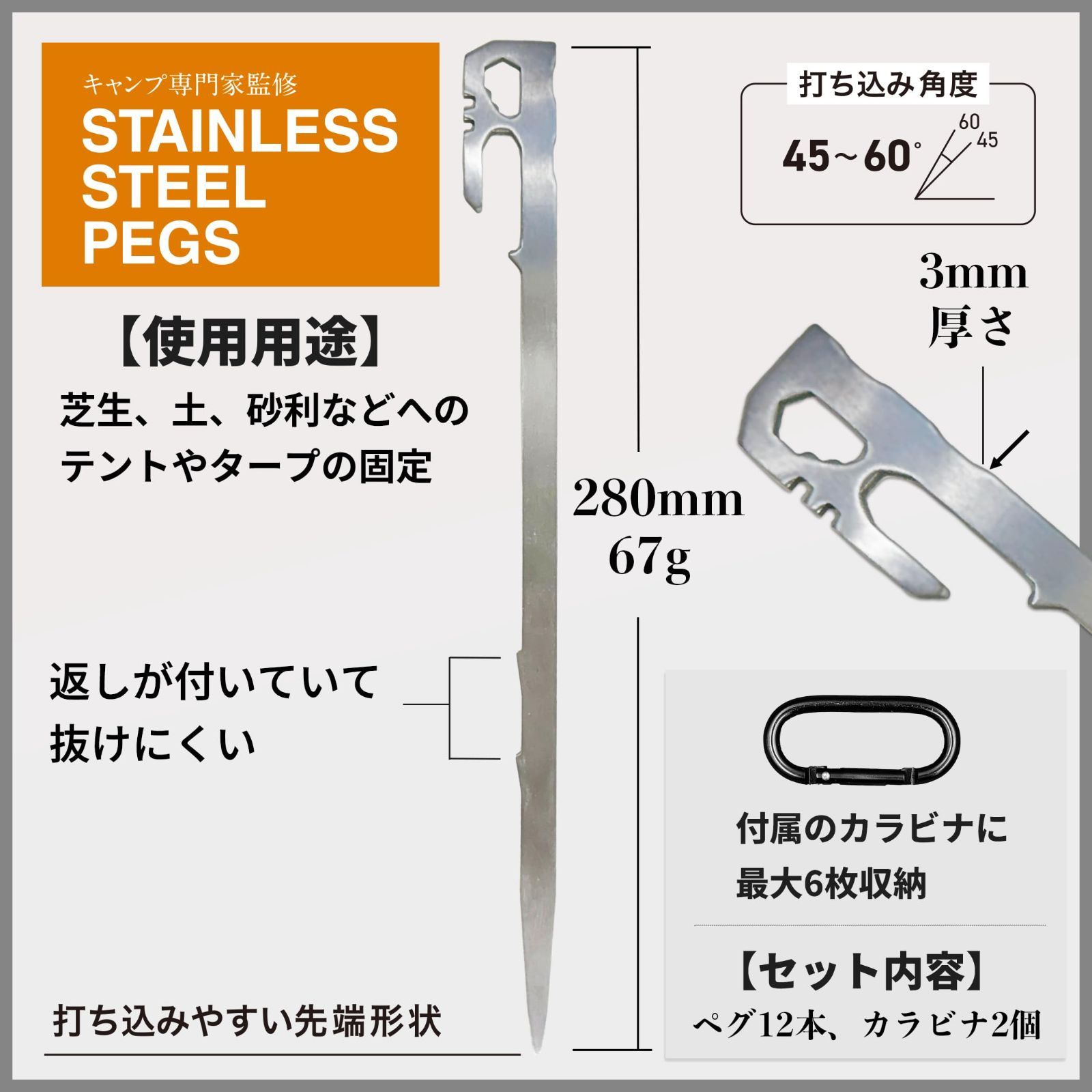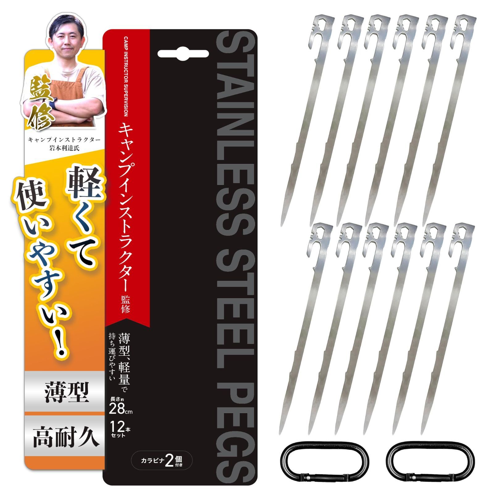 【特価セール】キャンプ専門家監修】テント ペグ 12本セット【一体成型・28cm】 【2024年 ステンレス ペグ SUS420 鍛造 アウトドア 登山 キャンプ 河原 芝生 土 砂利 EdisonBrain