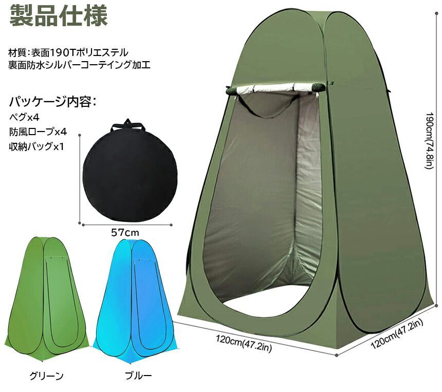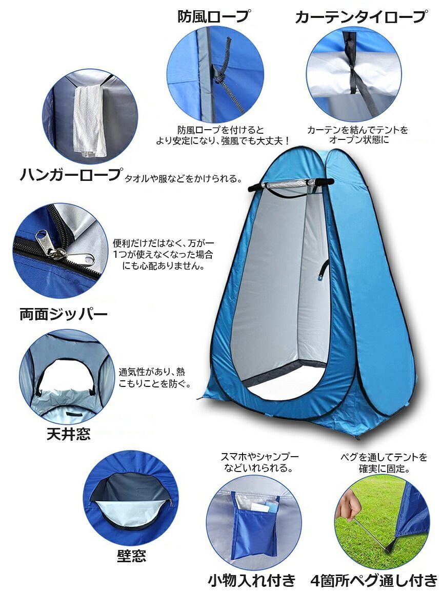 着替えテントワンタッチ テント プライバシーテント ビーチテント 簡易シャワールーム 防災テント サンシェード 更衣室 軽量 通気性 UVカット 折りたたみ アウトドア用品 防災用 アウトドアテント 設営簡単 防風防水防虫 プライベート テント防災