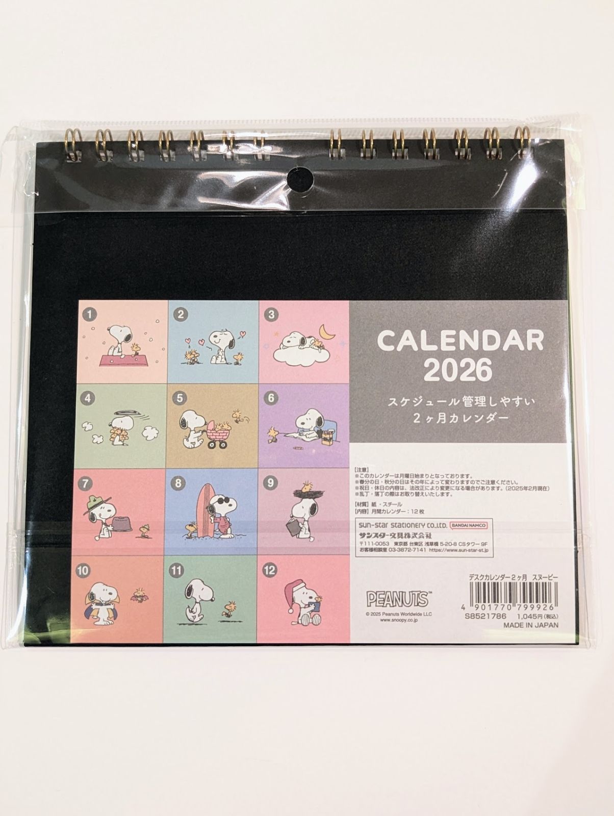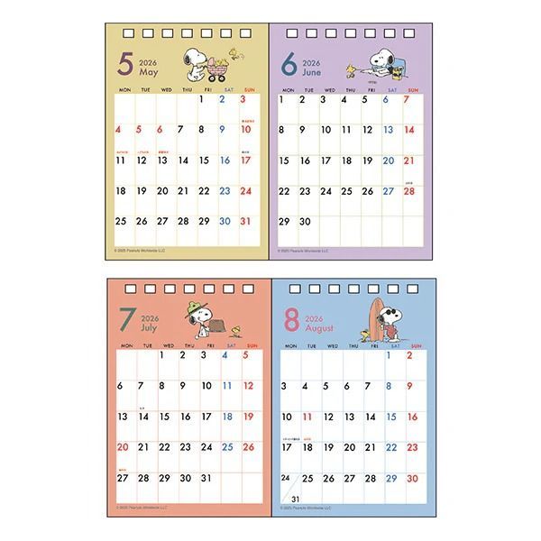 スヌーピー デスクカレンダー2ヶ月 2026 カレンダー 卓上 置き型