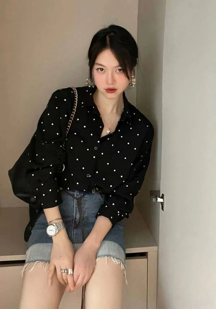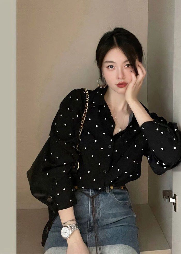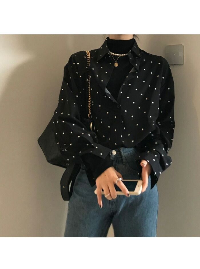 シャツ ブラウス 即購入OK レディース 春 秋 長袖 水玉柄 トップス ドット柄 ベーシック フェミニン 着回し シンプル おしゃれ 大人 カジュアル こなれ感 ゆったり ゆるっと ブラック 黒 春 夏 オフィス フォーマル xzzhang544