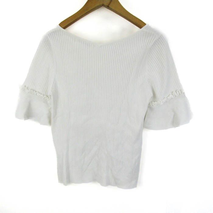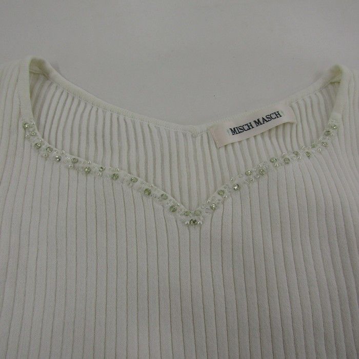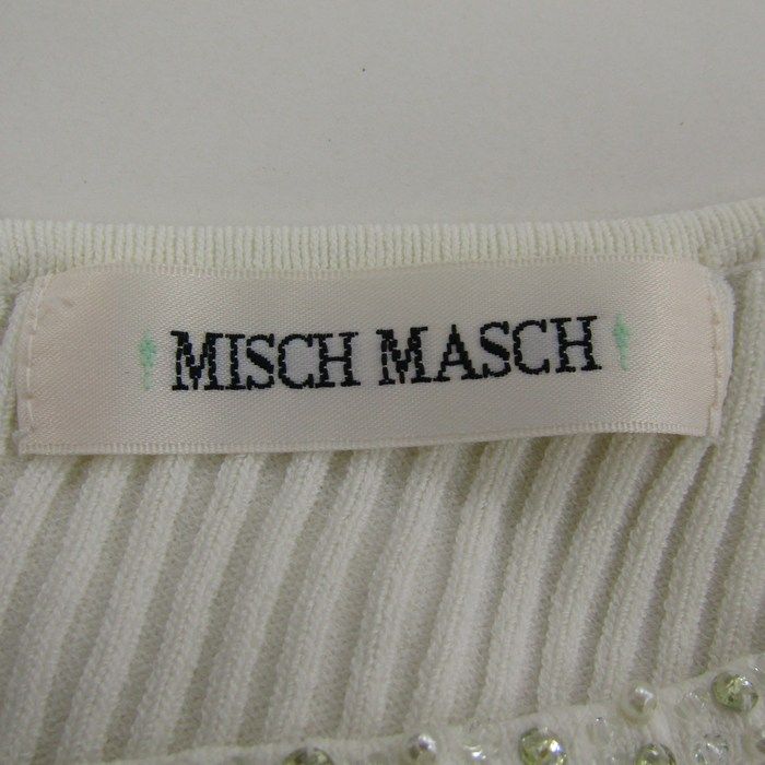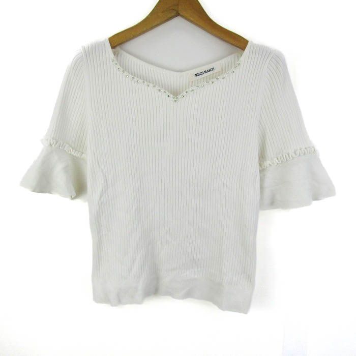 ミッシュマッシュ ニット トップス 半袖 リブ ビジュー レディース Mサイズ ホワイト MISCH MASCH 【中古】