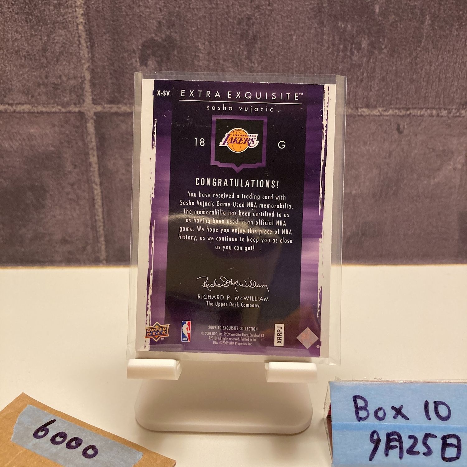 2009-10 Upper Deck Exquisite Collection Sasha Vujacic 47/50 Los Angeles Lakers Game-Used ジャージ Purple カード