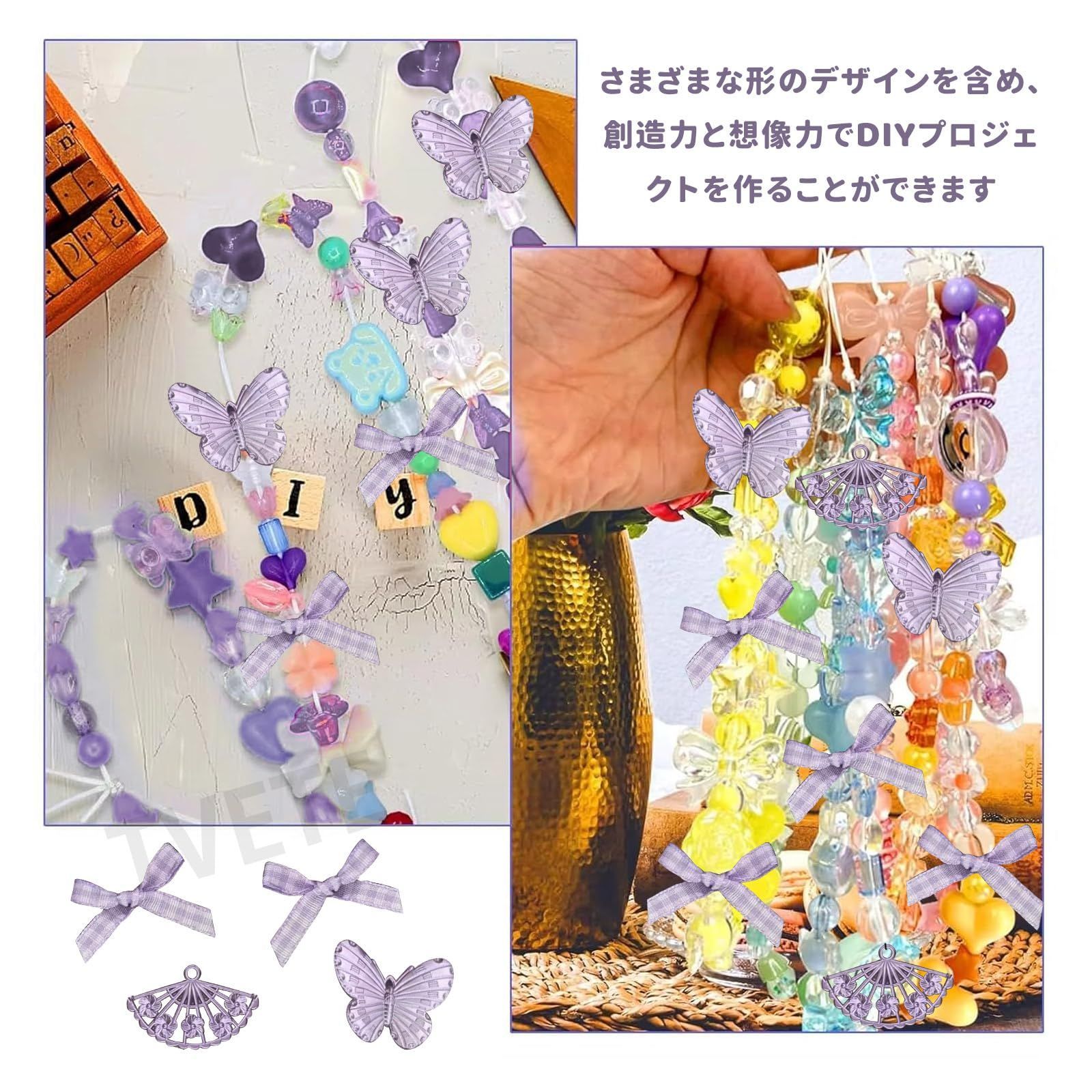 【特価商品】TVETE 樹脂デコレーション ビーズ デコパーツ ビーズ ミックス【約100gパック】樹脂部品 装飾部品 アクセサリーパーツ 装飾ビーズ 蝶 弓 花 扇などの形 手工芸品 手作り DIYクラフト 初学者 携帯電話ケース フォトフレーム ネイルデコ