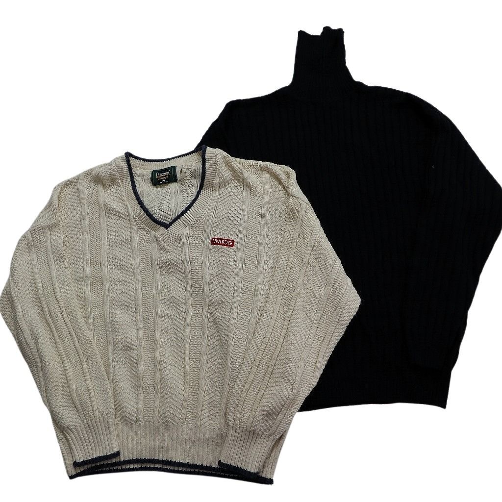 古着卸 まとめ売り 混紡素材 無地 セーター 5枚セット (メンズ 2XL ) ニットポロ ケーブル編み タートルネック Vネック 中古 古着 MY3559