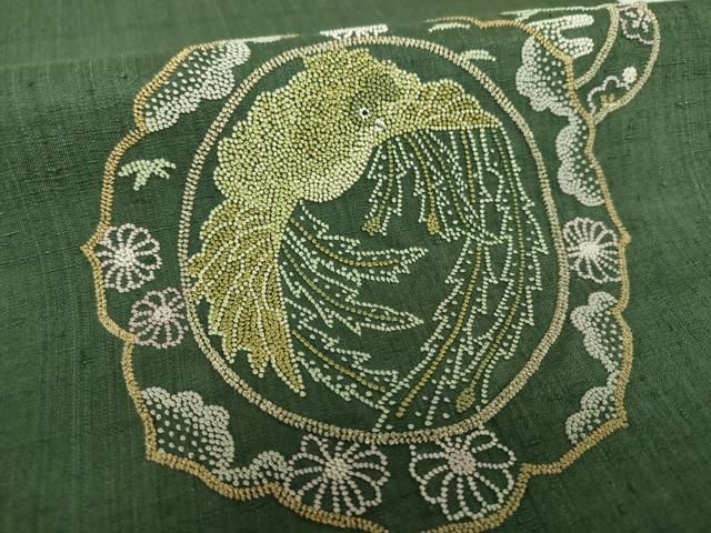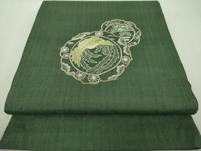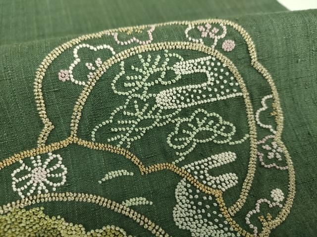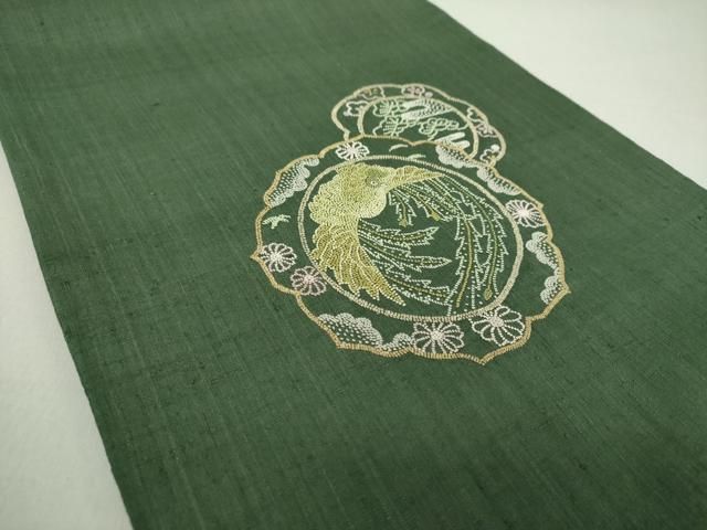 平和屋着物●中国三大刺繍 総相良刺繍 総刺繍 太鼓柄袋帯 紬地 花鳥丸文 正絹 逸品 DAAS3622ps