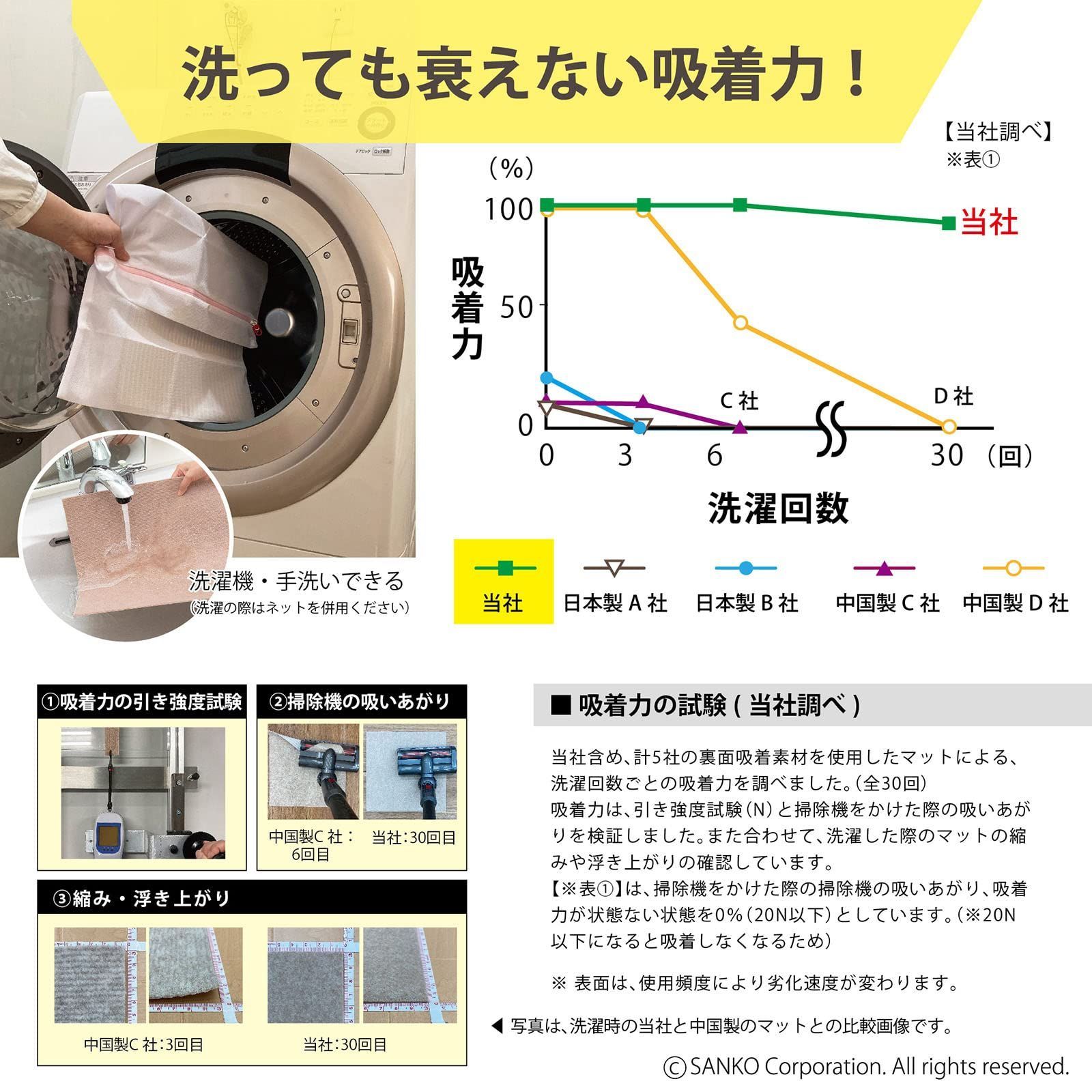 【日本製 撥水 消臭 洗える】サンコー ずれない タイルカーペット 30×30cm グリーンセット 8枚 フラットタイプ おくだけ吸着 ジョイントマット KD-33