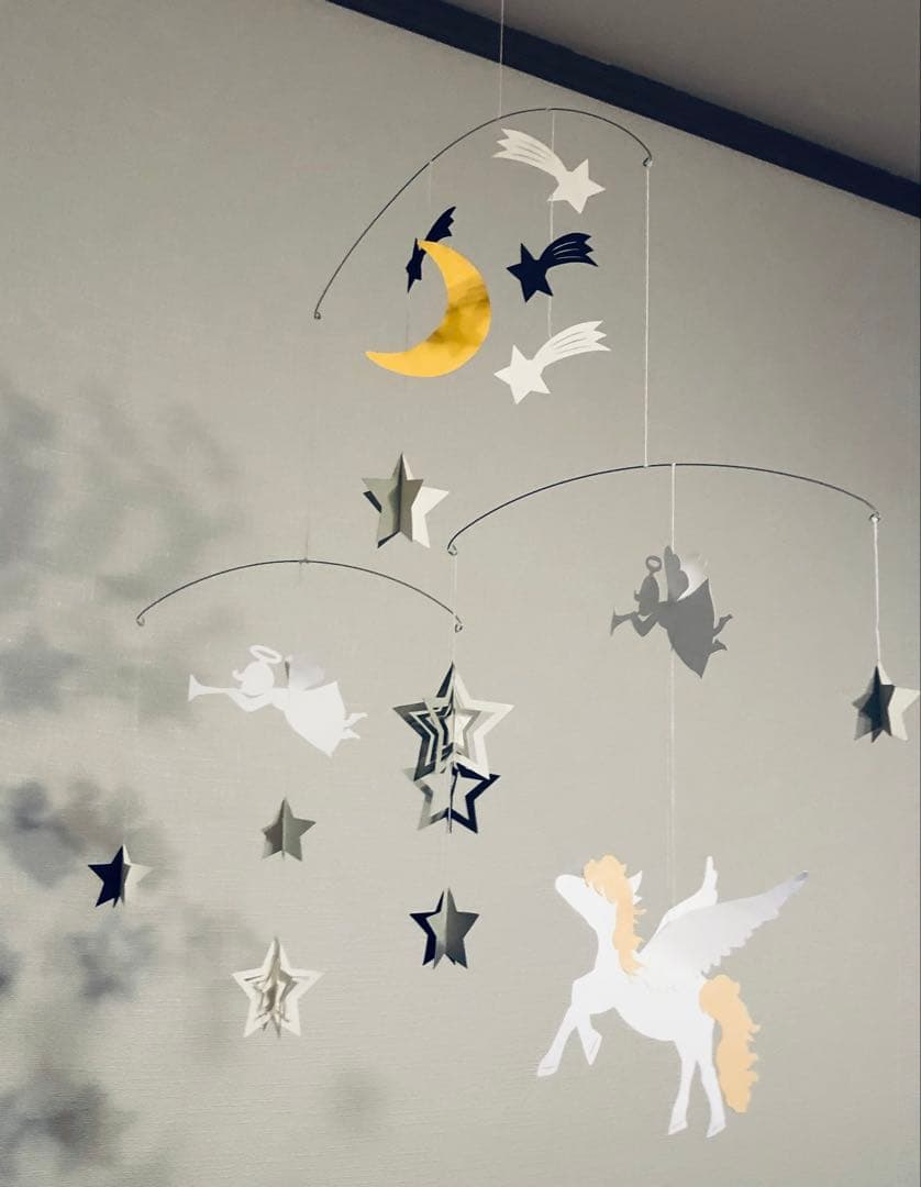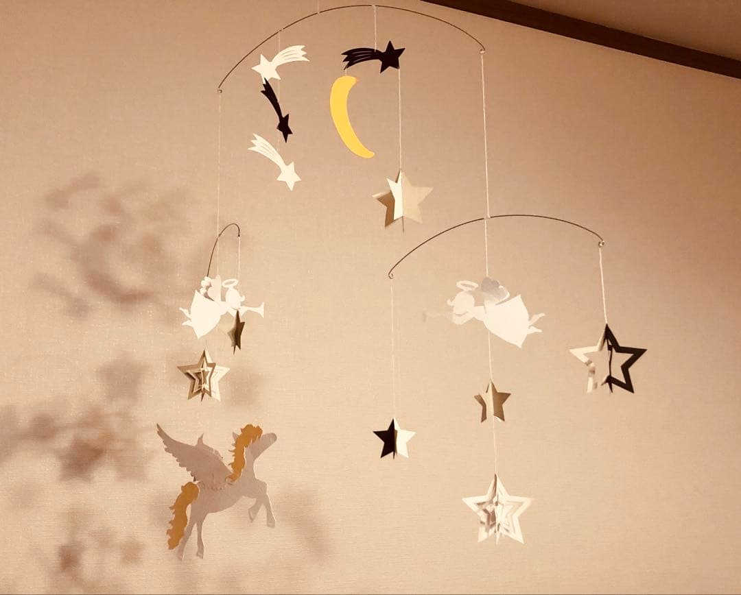 モノトーン調 星空のモビール ❤︎天空を駆けるペガサスと天使❤︎ インテリア 北欧