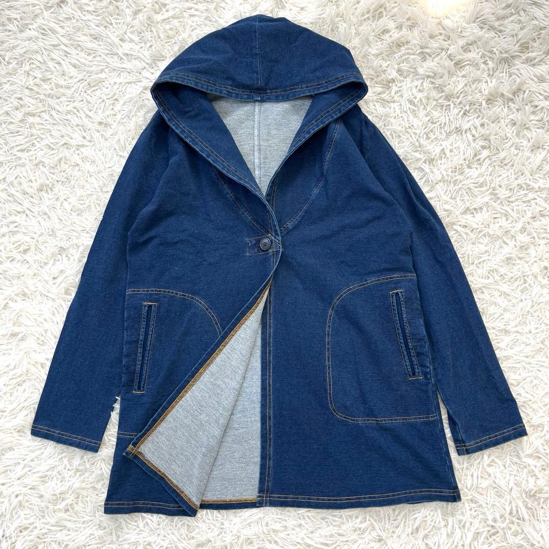 〝ノアジェ〟デニムジャケット スウェット地 羽織り インディゴ Mサイズ