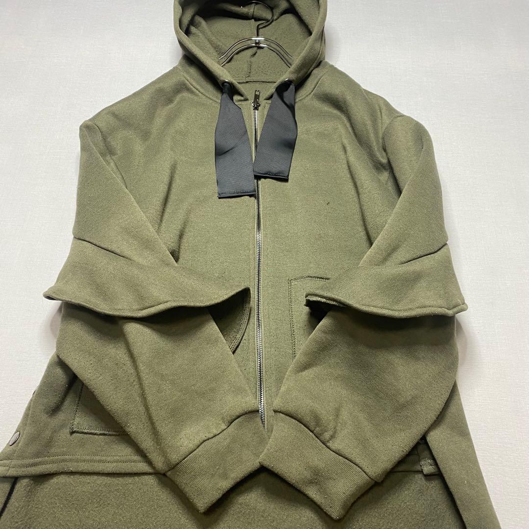コーラント ジップアップパーカー 裏起毛 長袖【M-L】カーキ色 フリル袖
