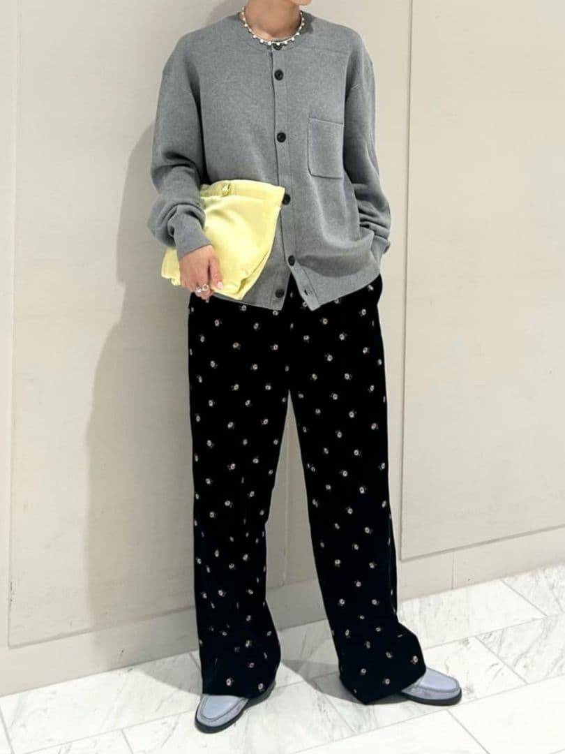 【CABaN】 コットンカシミヤ ポケットクルーネックカーディガン グレー M