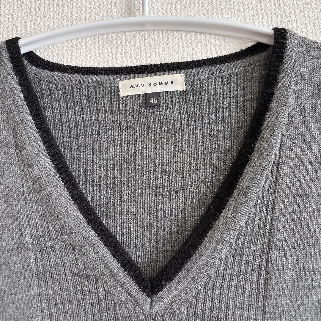 アーヴェヴェ オム ニット セーター カットソー Vネック グレー 48