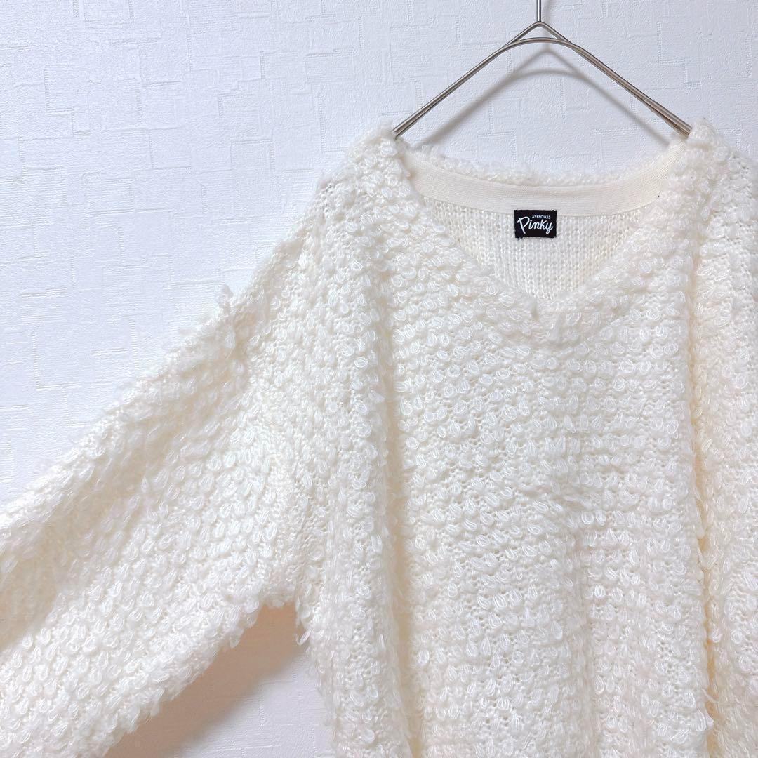 アズノウアズピンキー【F】ループヤーン ホワイトニットプルオーバー ボリューム袖