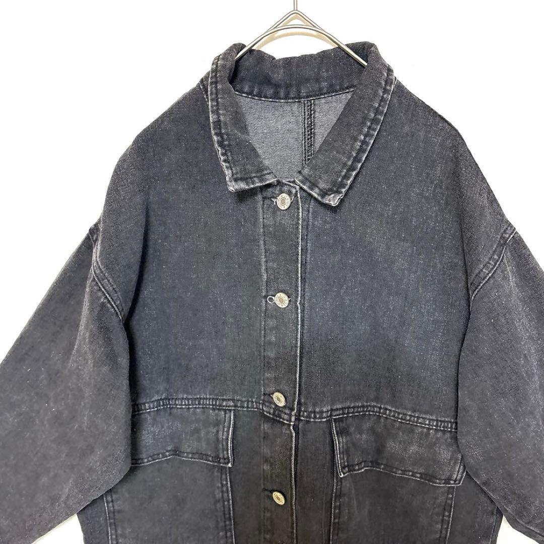 ゴシップロサンゼルス◎カジュアルデニムジャケット◎ルーズシルエット黒 綿100