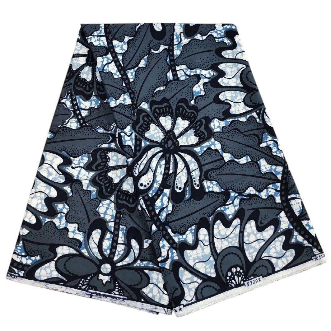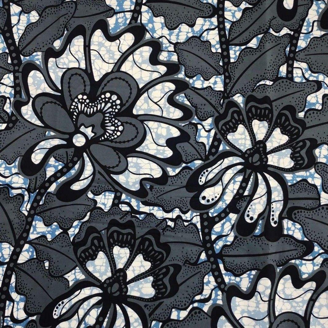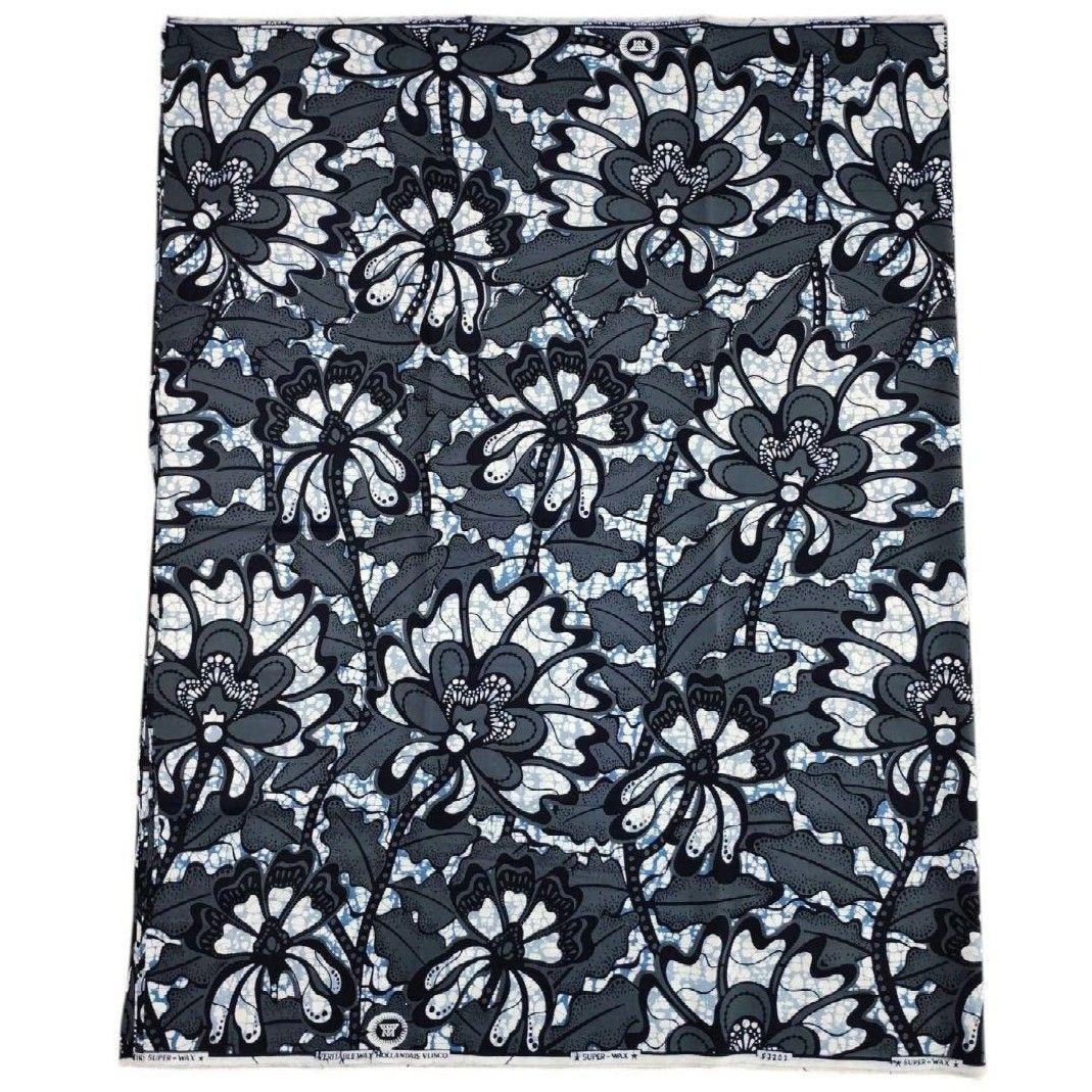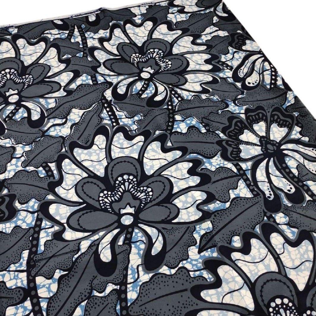 アフリカンプリント 1ヤード 灰色×濃紺 アフリカ布 ファブリック