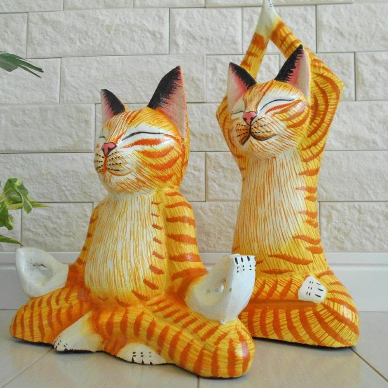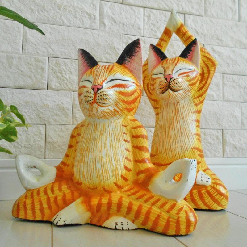 バリ猫 ペア ヨガ ポーズ編 YOGA 瞑想 合掌 悟り ねこ ネコ 猫 猫雑貨