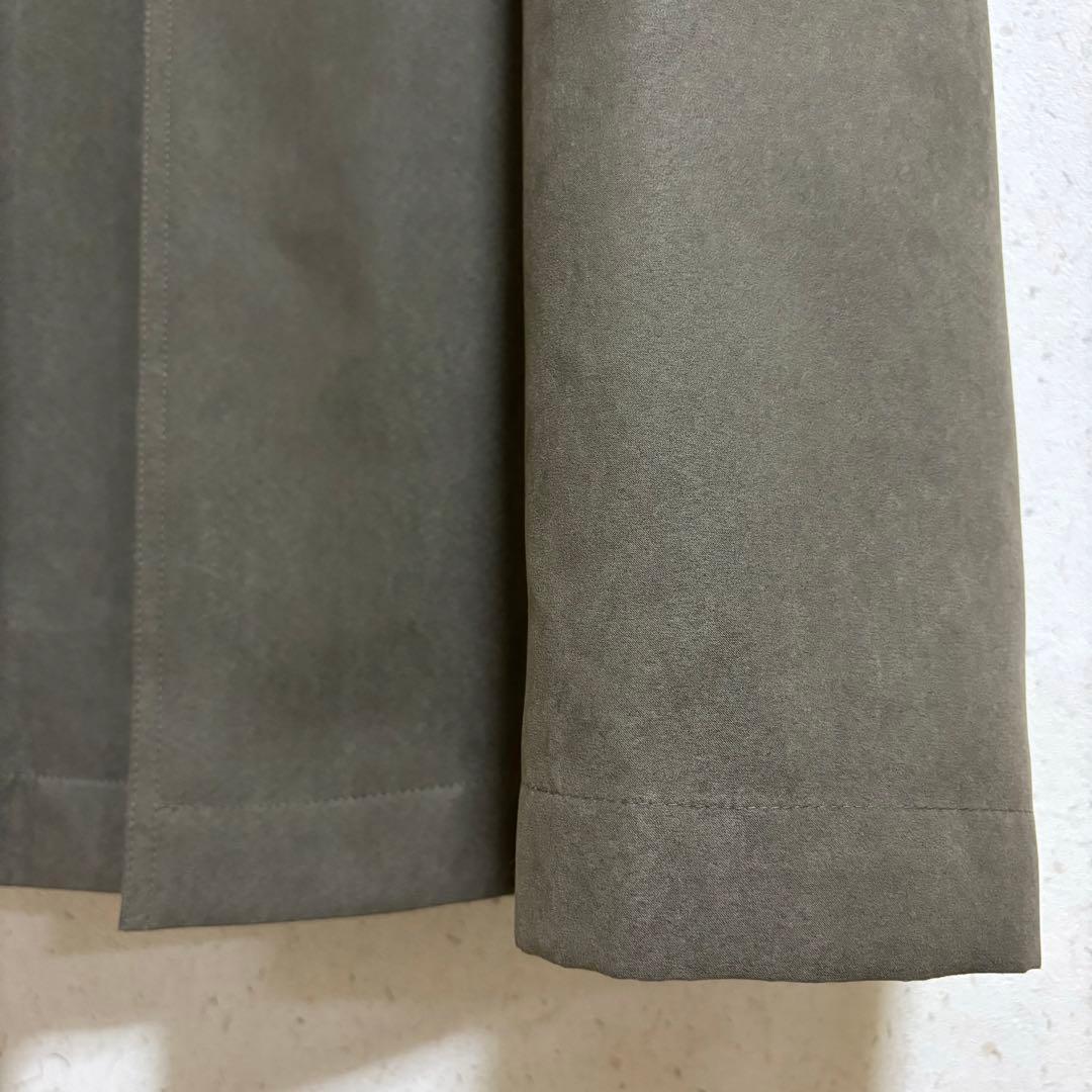 スエード調 ステンカラーロングコート メンズM モスグリーン