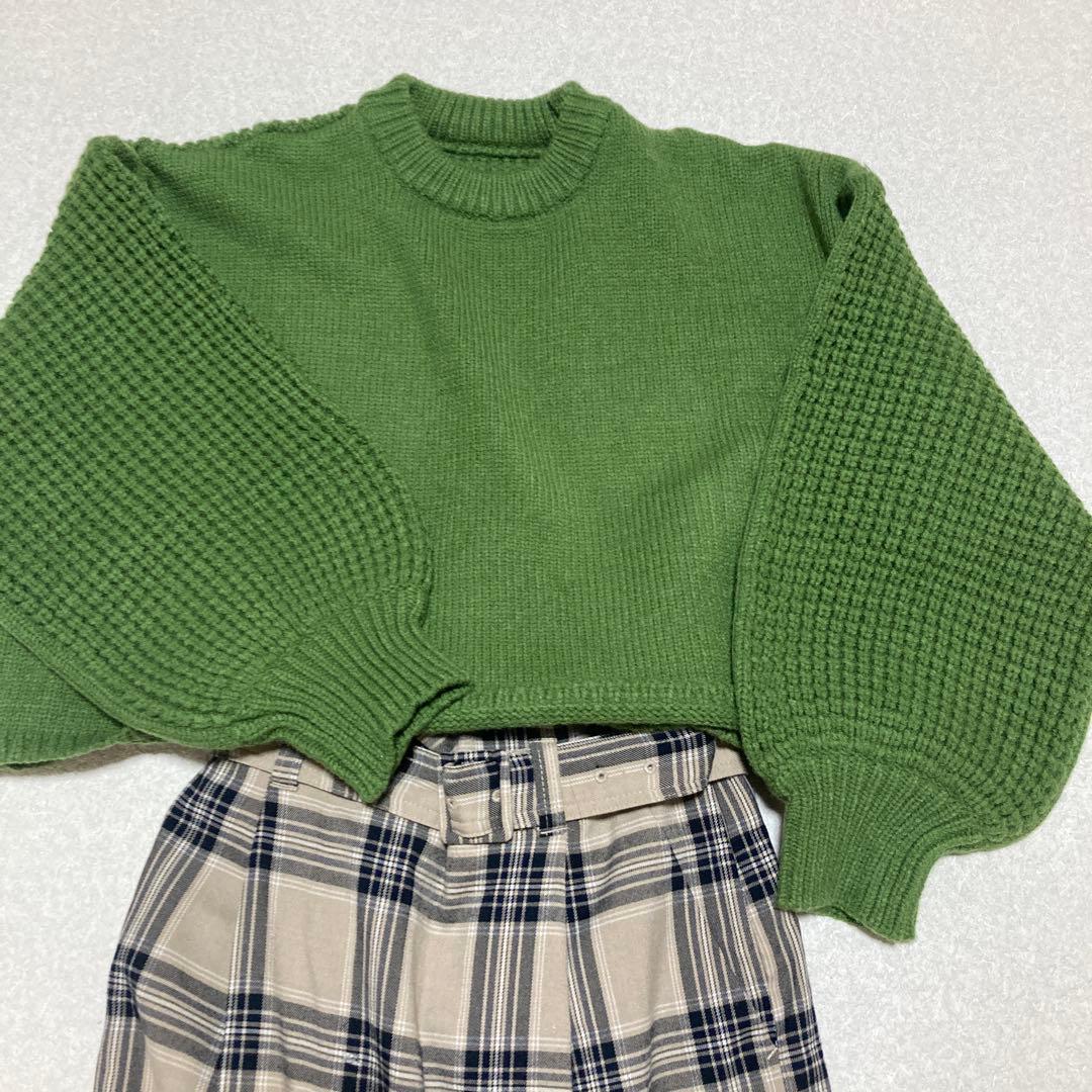 SELECT MOKA グリーン クロップドニット セーター 新品 タグ付き‼️