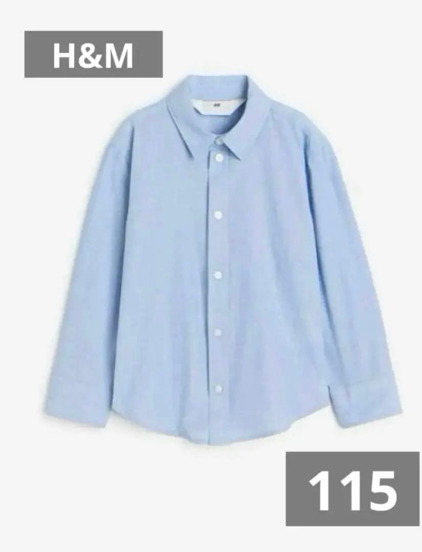 H&M 長袖コットンシャツ ライトブルー 115cm