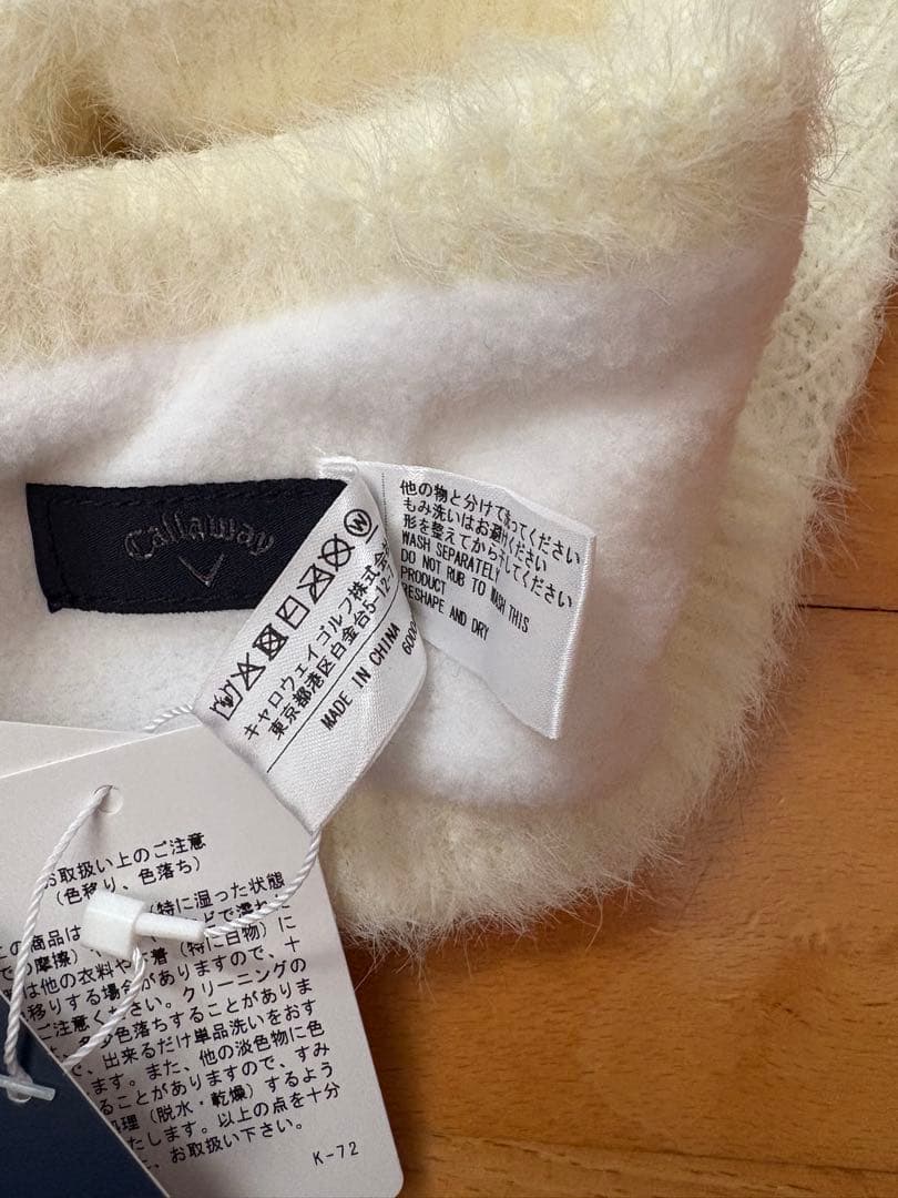 新品タグ付Callaway ホワイトモヘアニット帽 ビジュー付