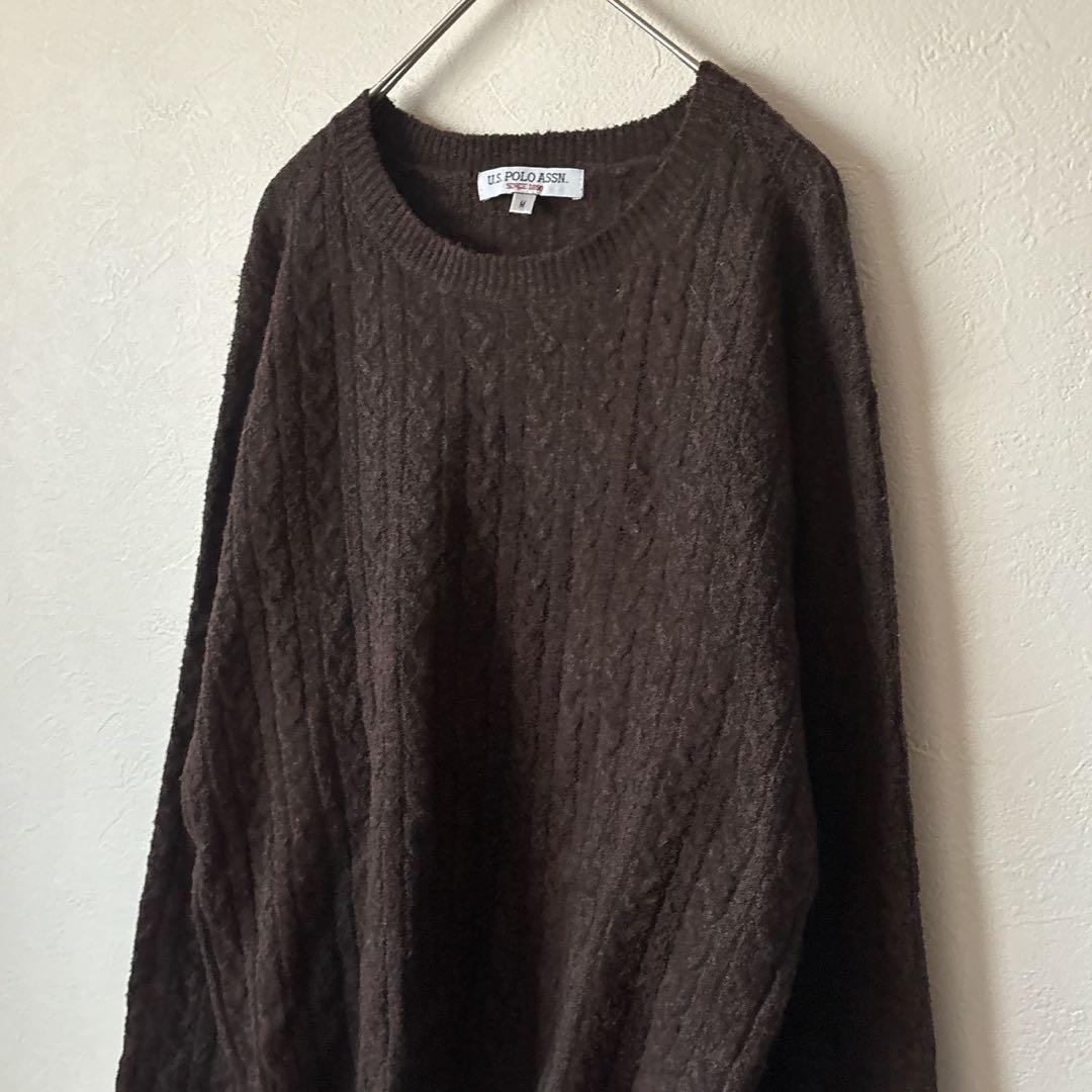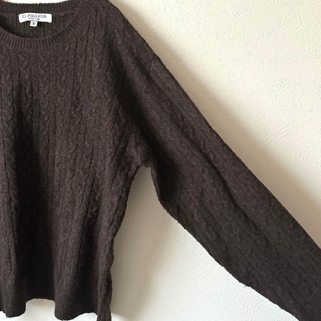 ユーエスポロアッスン ニット セーター ブラウン M トップス クルーネック