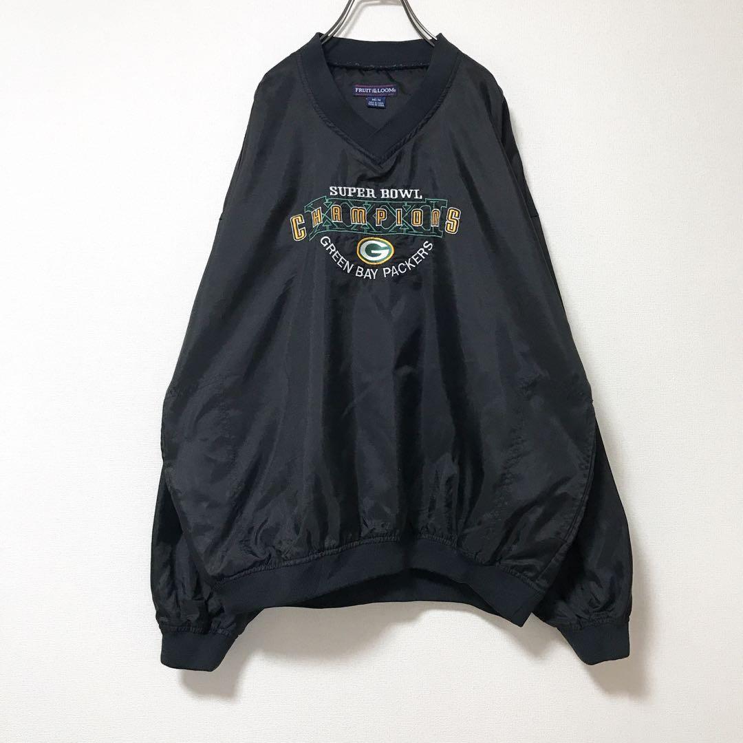 パッカーズ スーパーボール ナイロンプルオーバー チーム 刺繍 黒 M