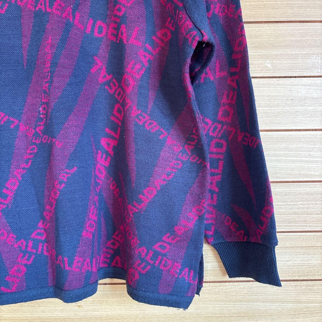 【最終価格‼️】派手目ニット 長袖 M ピンク ネイビー 総柄 ストリート 薄手