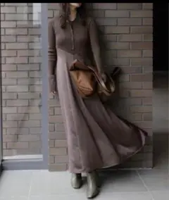 ライフイズベーシック【L】ポロシャツワンピース 半袖 フレア 綿ミックス 紺