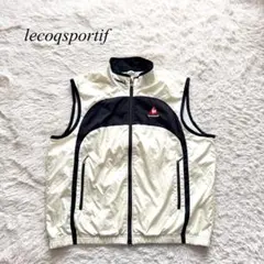 【ルコックスポルティフ】ベスト フルジップ アイボリー ロゴ ゴルフウェア