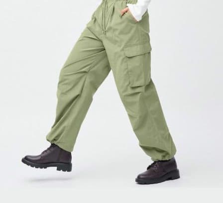 【定価2990円】★新品タグ付★GUパラシュートカーゴパンツXS 53GREEN